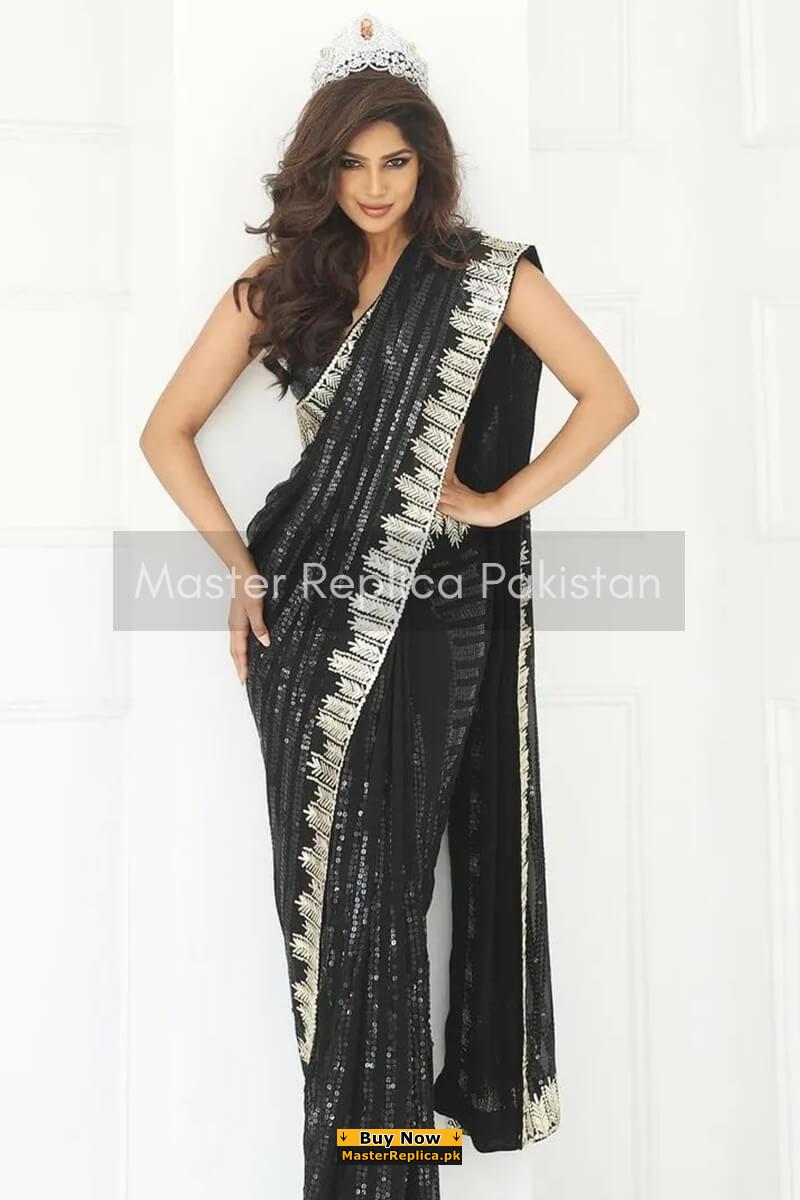 Evoke a sense of opulence & modernity with this stunning Master Replica from the Latest Designer Black Saree Collection.