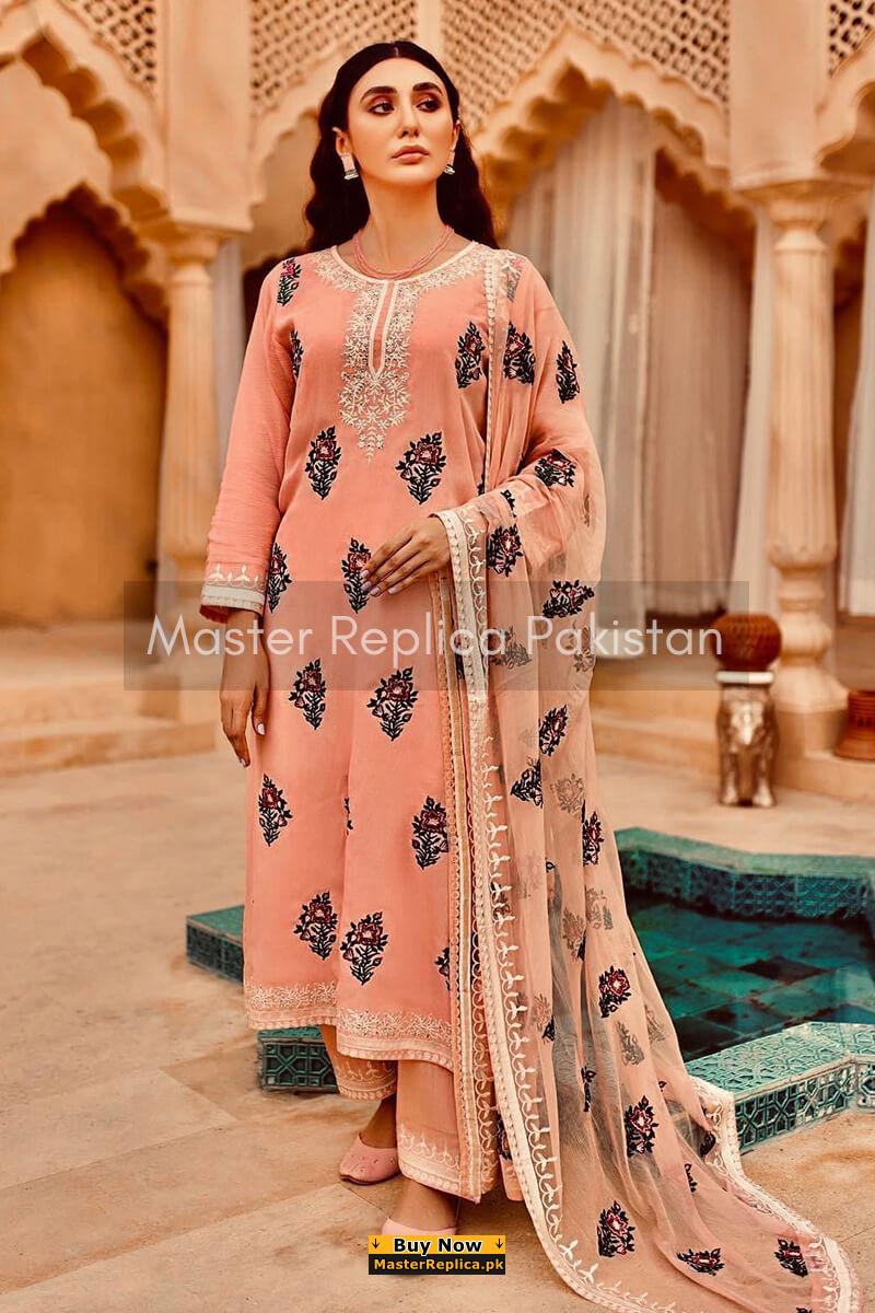 A must have creation for day to evening wear. Delve into this Alluring Master Replica from the Latest Designer Embroidered Net Collection.