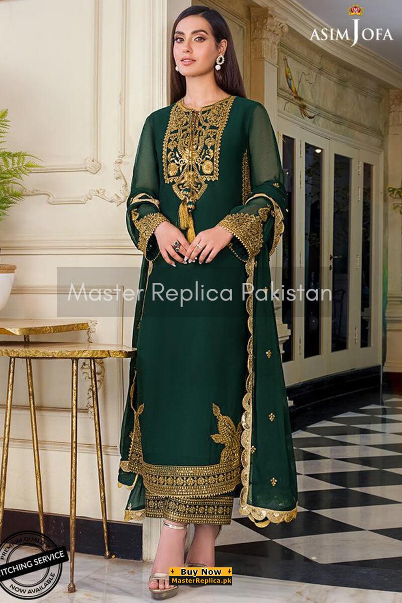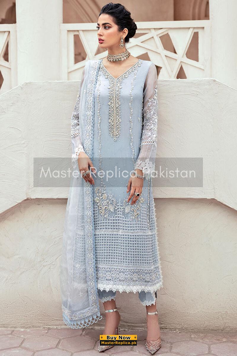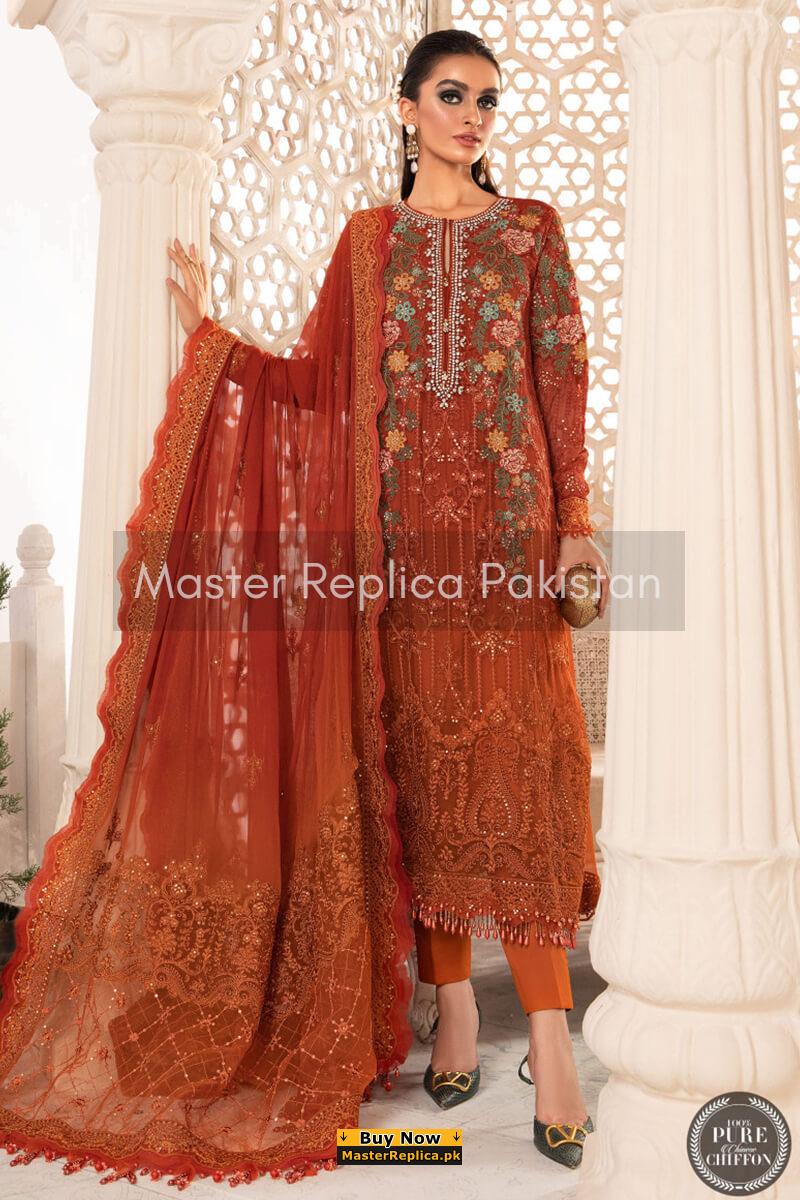Dazzle in this alluring embroidered Master Replica from the Latest Designer Chiffon Collection depicting the Finest Craftsmanship.