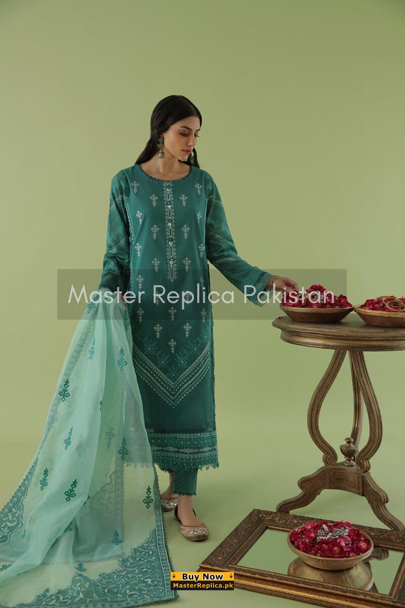 An example of beauty and elegance. Look breathtakingly stylish in this embroidered Master Replica from the Latest Collection of Asim Jofa.