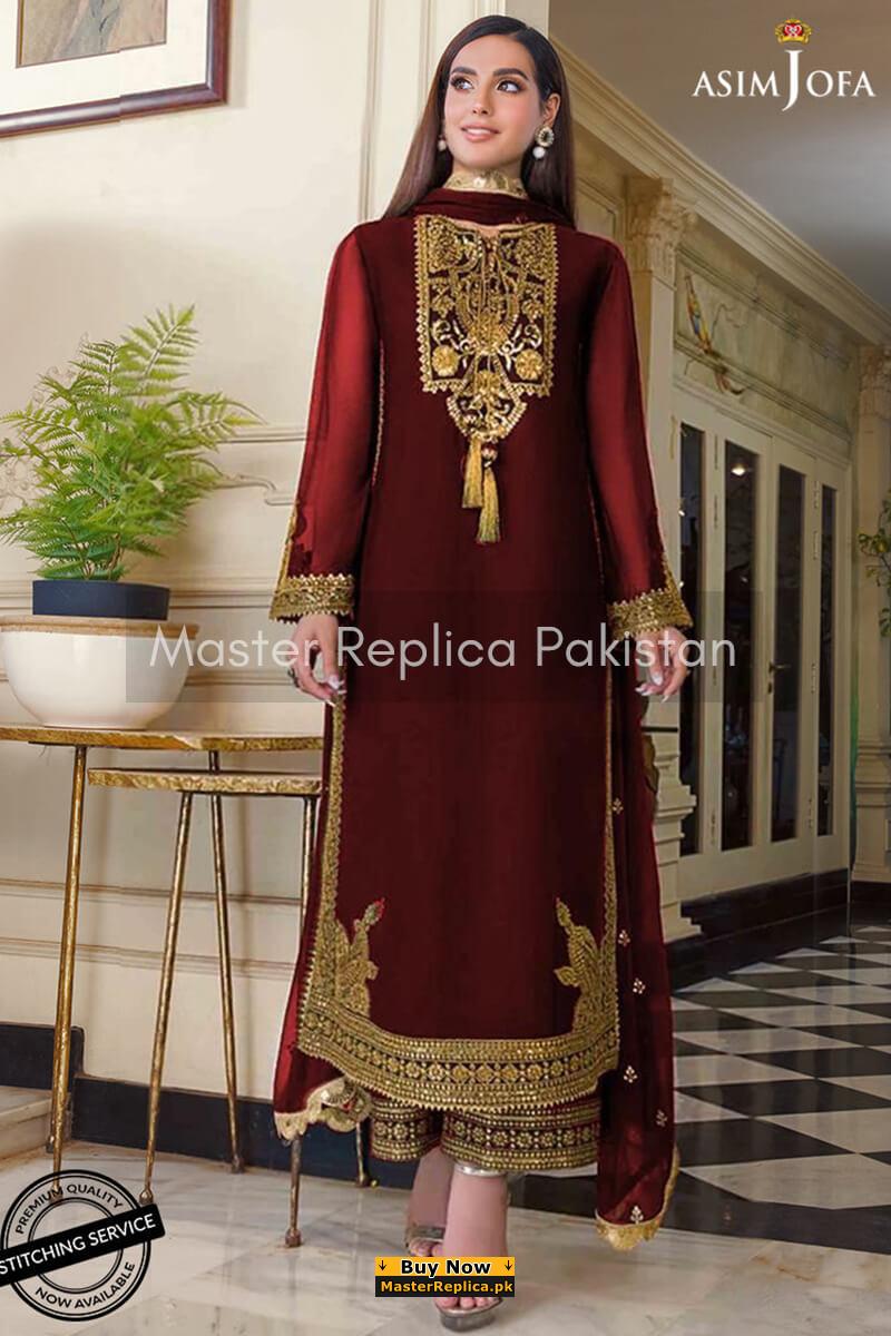 Asim Jofa Maroon Chiffon Replica