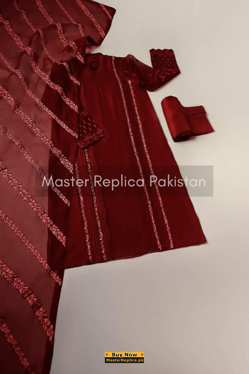Agha Noor Maroon Organza Replica