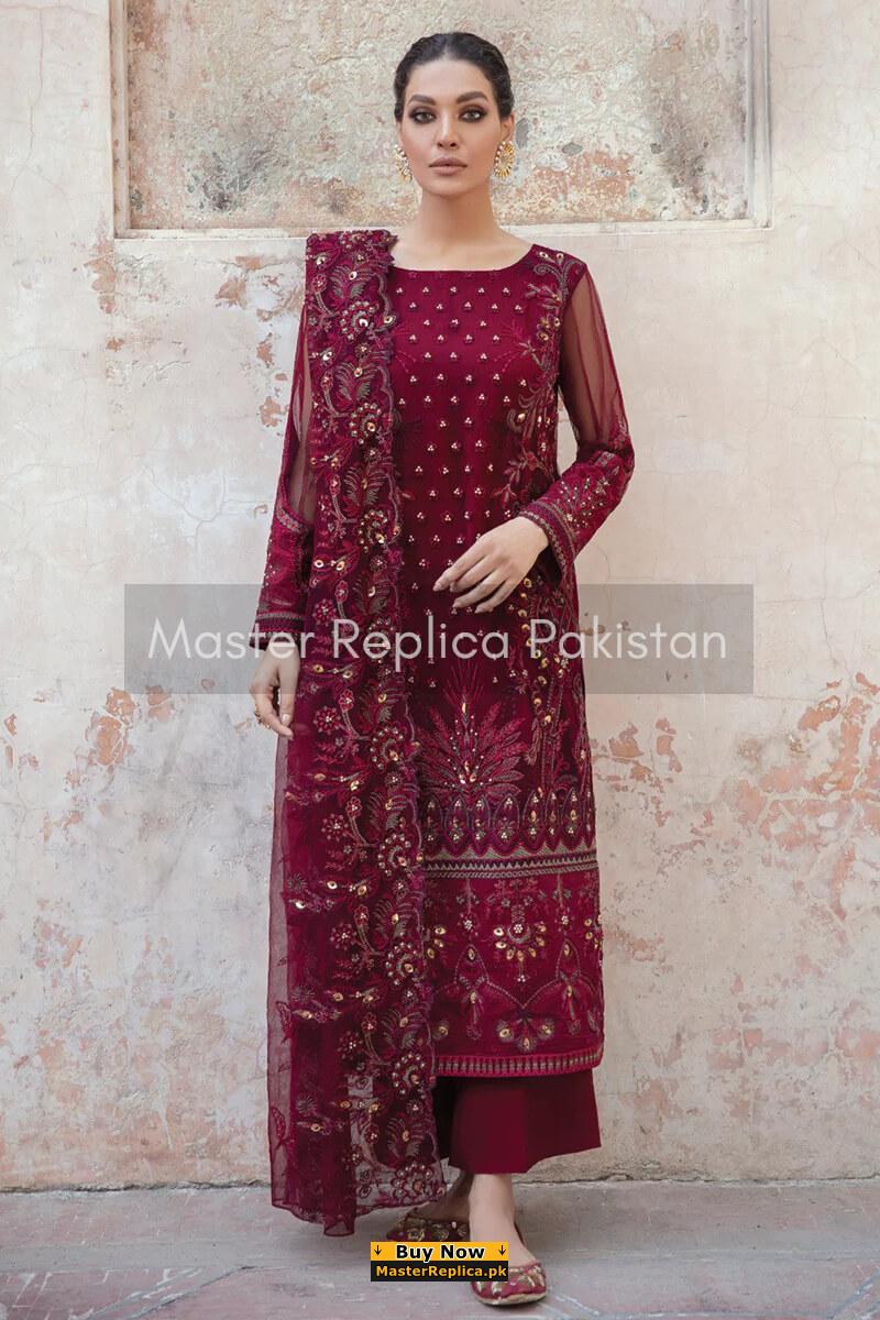 Maria B Ruby Red Chiffon Replica