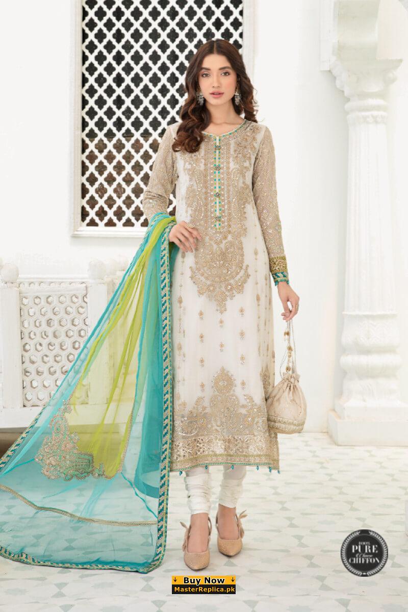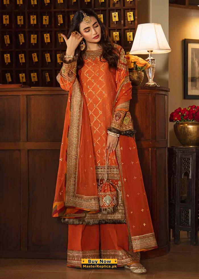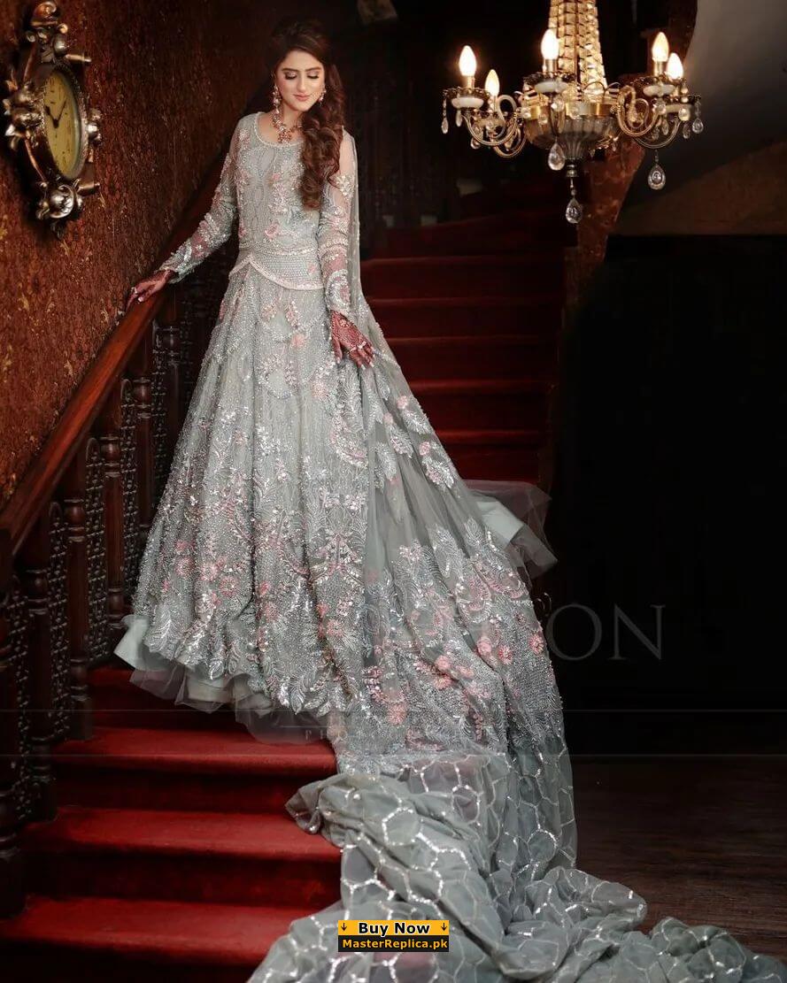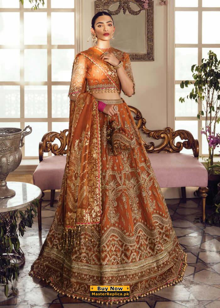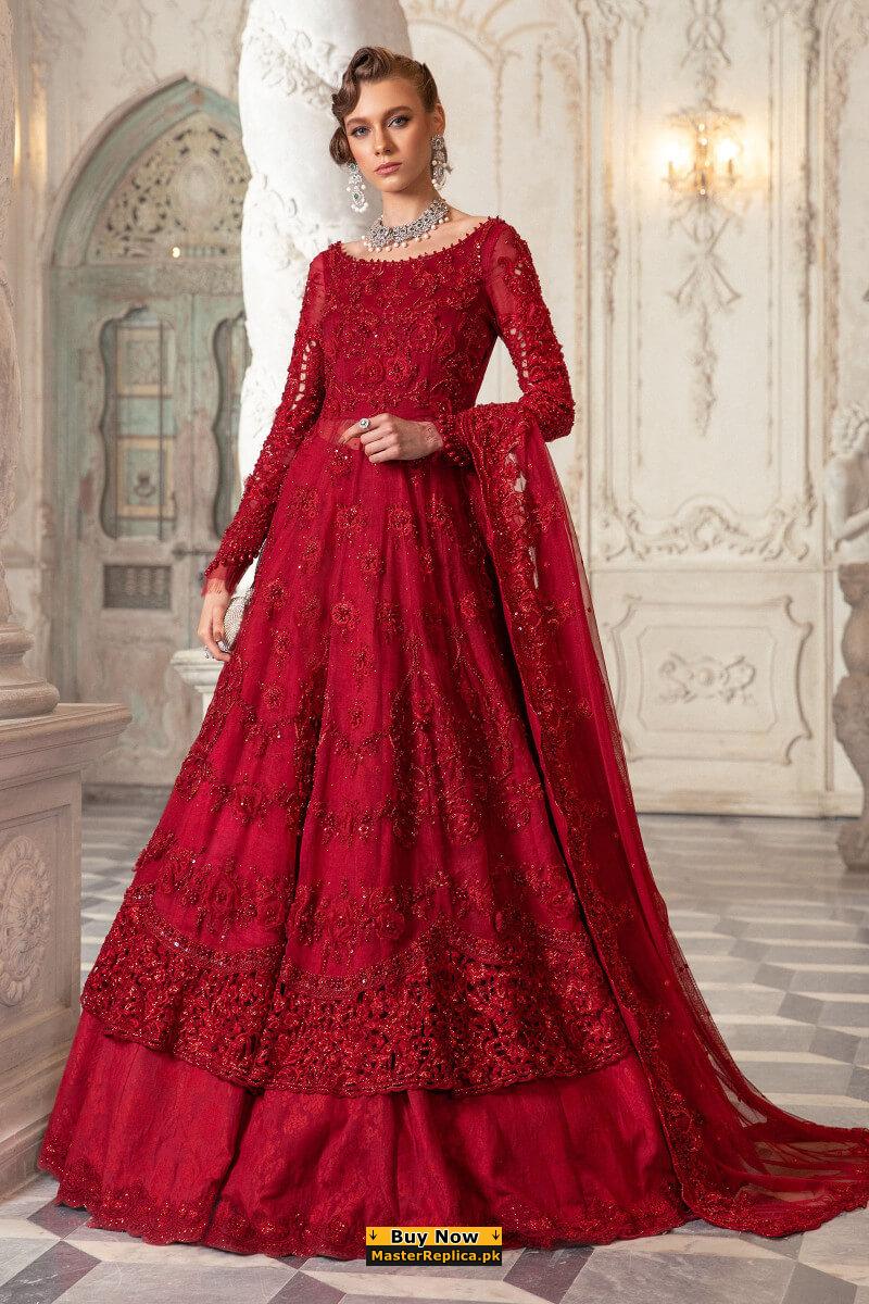 Artfully crafted with divine detailing of thread embroidery this Master Replica from the Latest Designer Wedding Collection is a perfect show stealer.