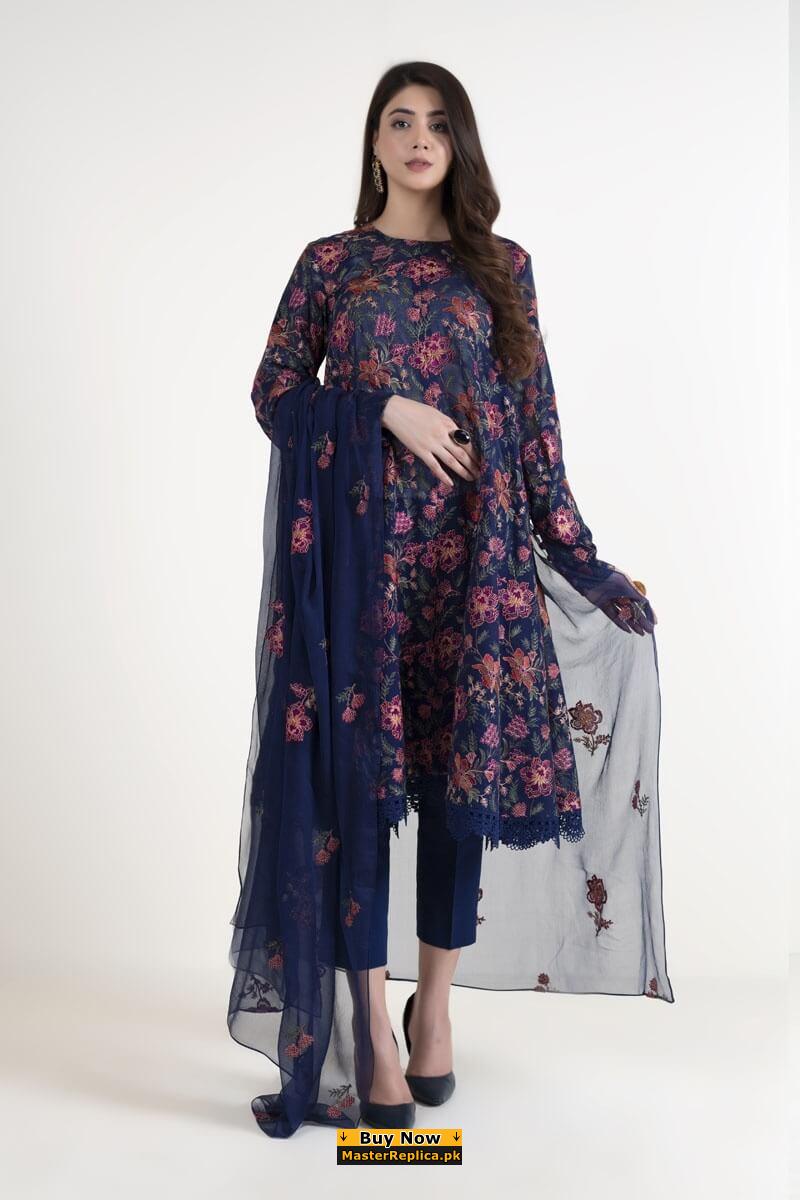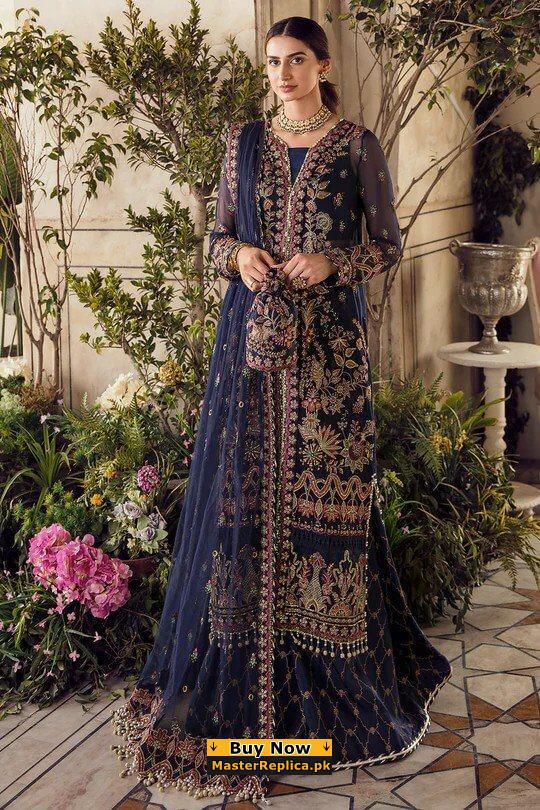 An example of beauty and elegance. Look breathtakingly stylish in this embroidered Master Replica from the Latest Collection of Maria B.