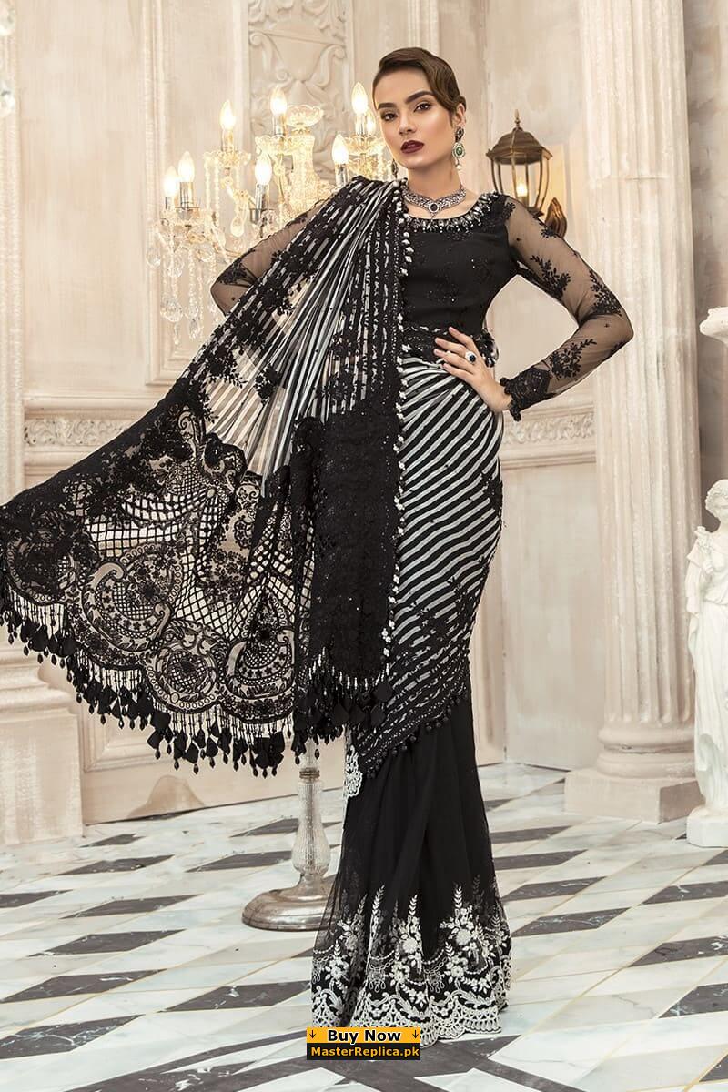 Maria B Black Saree Net Replica