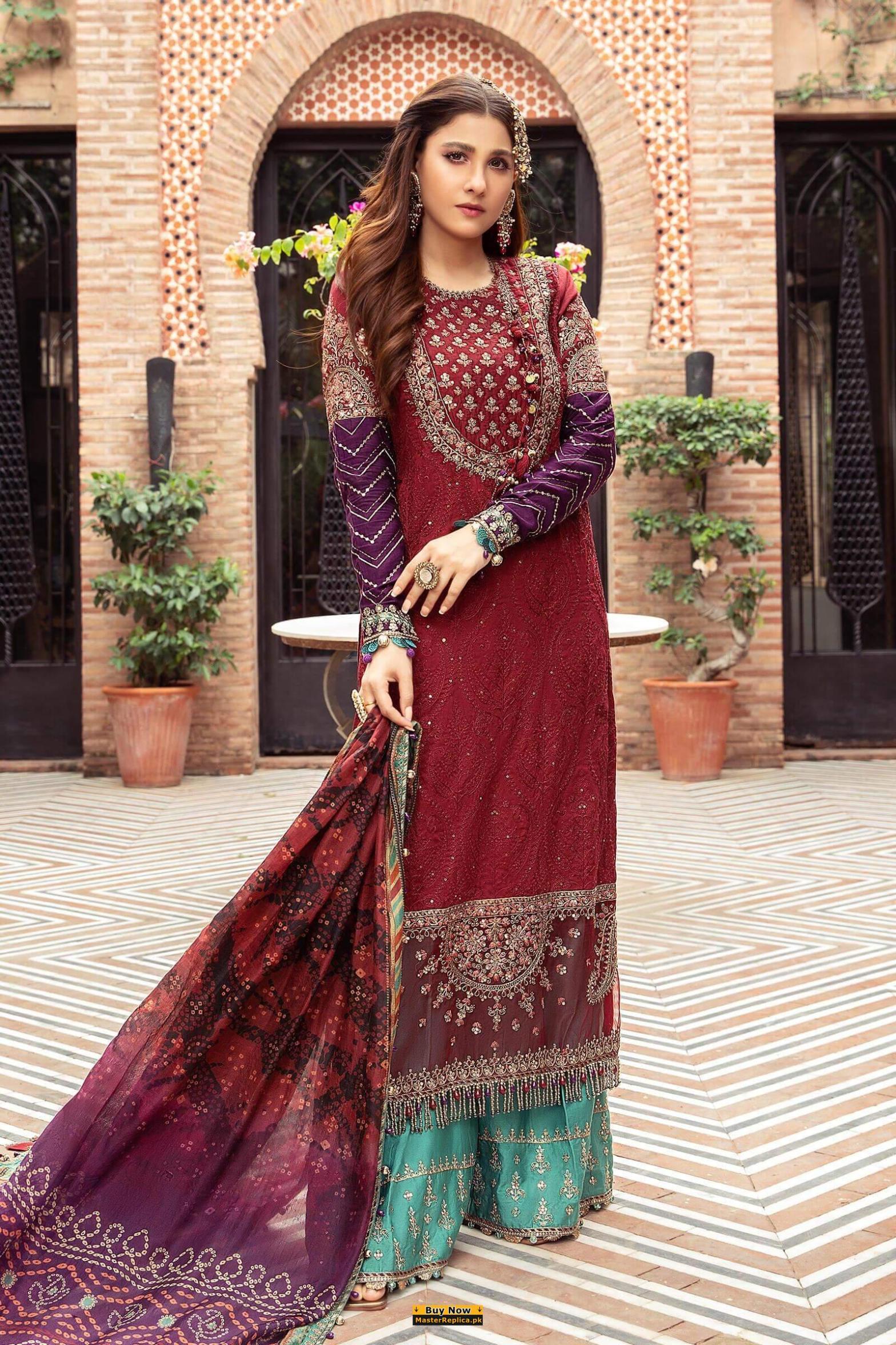Maria B Maroon Lawn Master Replica