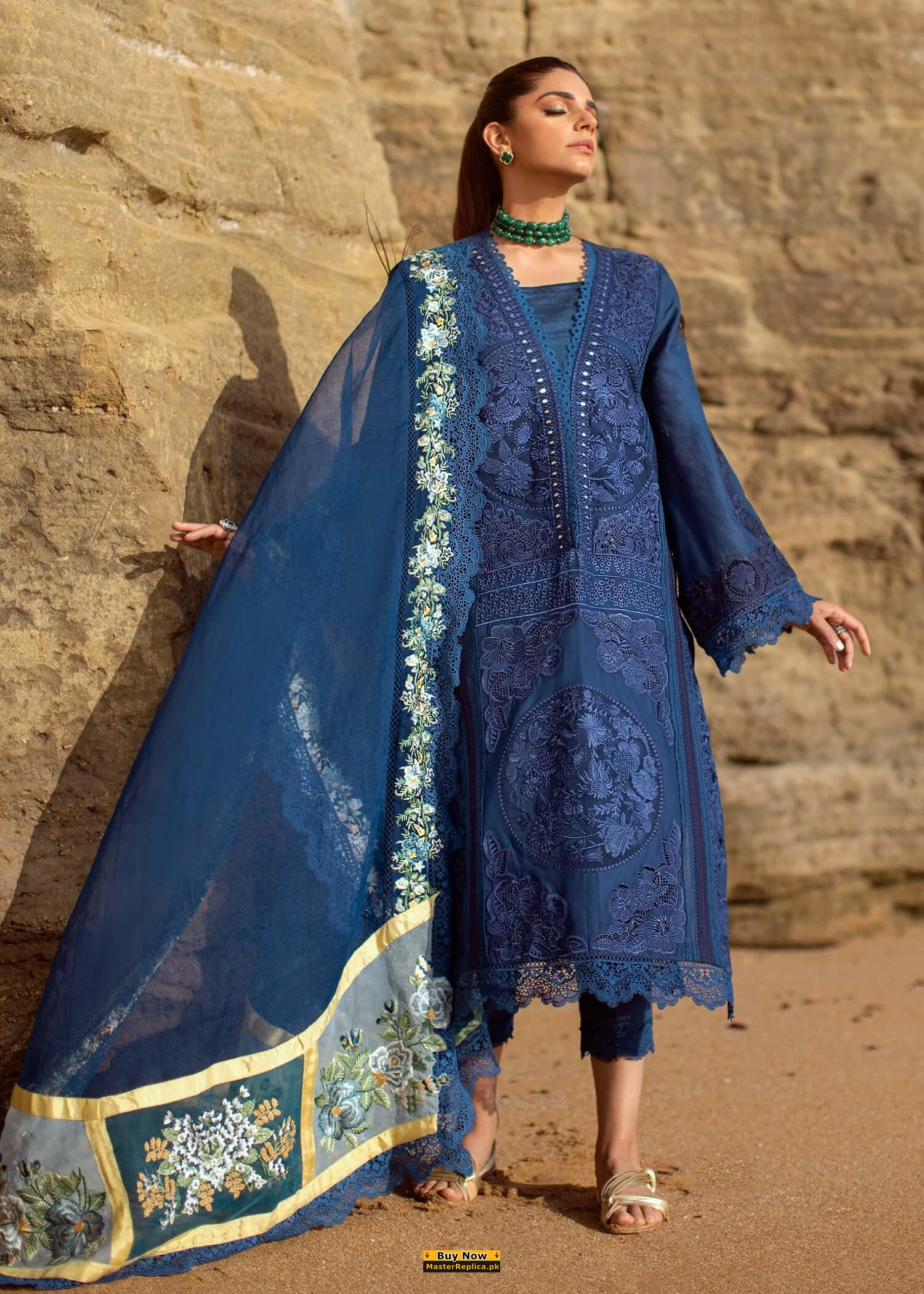 Dazzle in this alluring embroidered Master Replica from the Latest Designer Summer Collection depicting the Finest Craftsmanship.