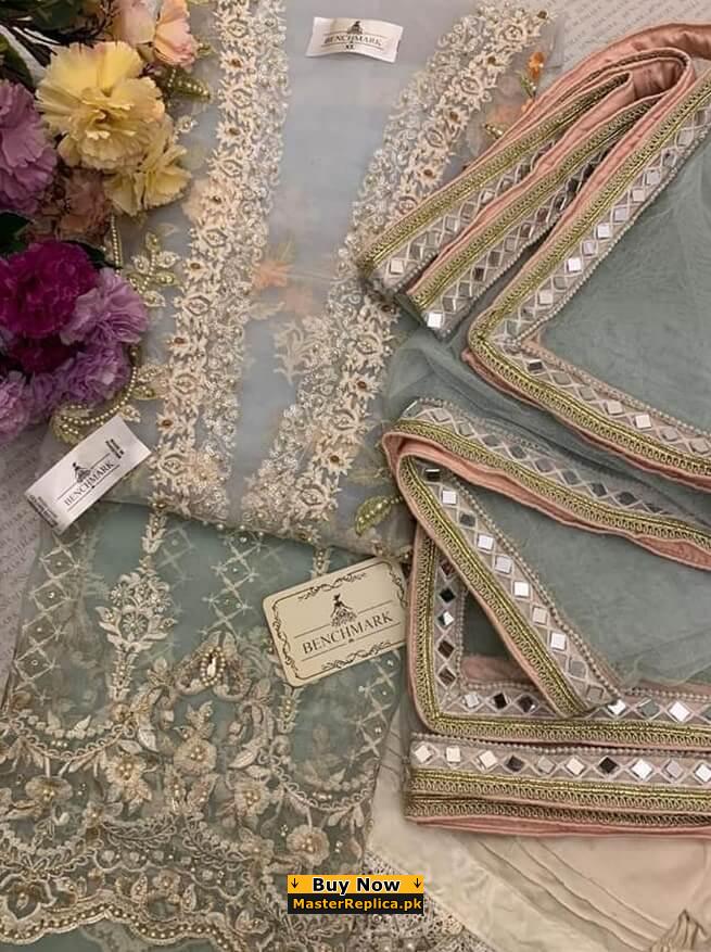 Fully Embroidered Hand work and Mirror work Chiffon Front