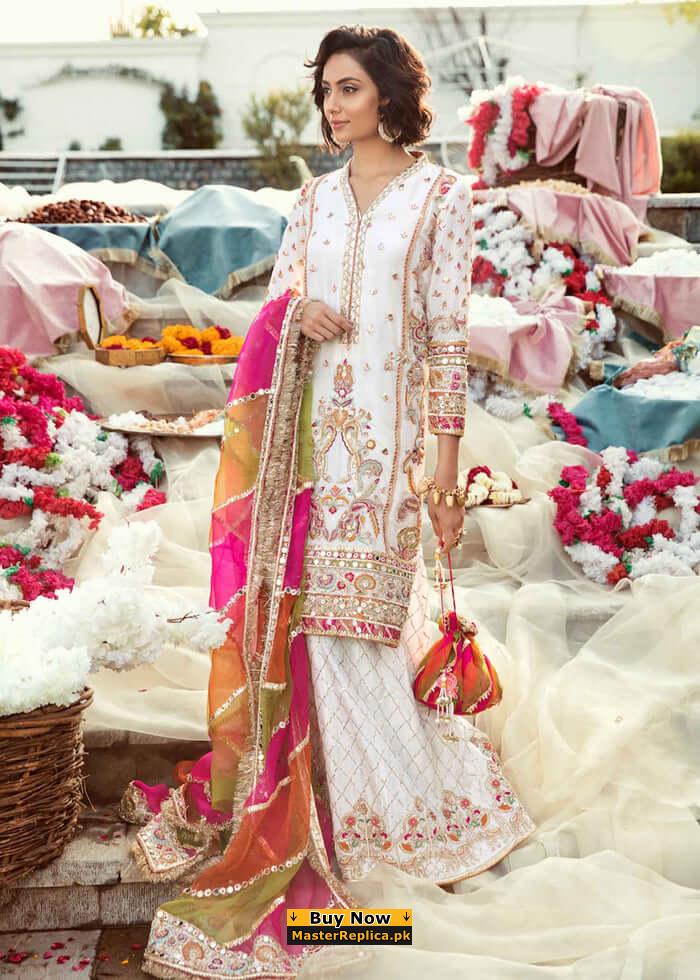 Artfully crafted with divine detailing of thread embroidery this Master Replica from the Latest Designer White Collection is a perfect show stealer.