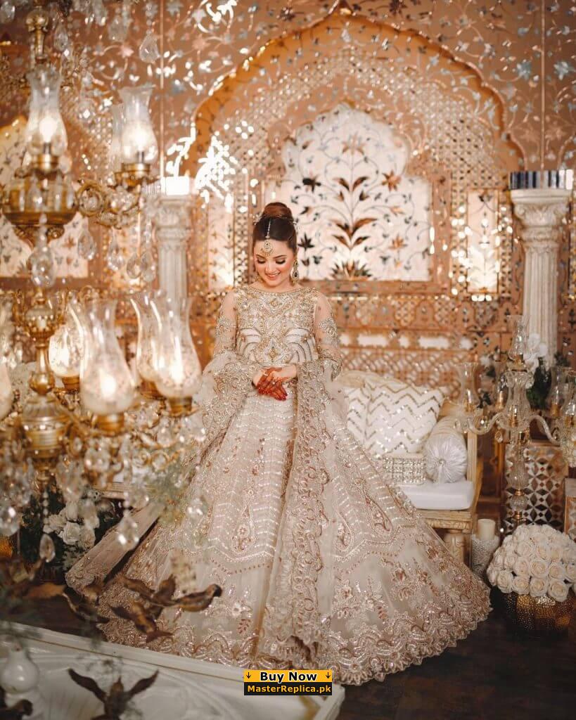 Dazzle in this alluring embroidered Master Replica from the Latest Baroque Wedding Collection depicting the Finest Craftsmanship.