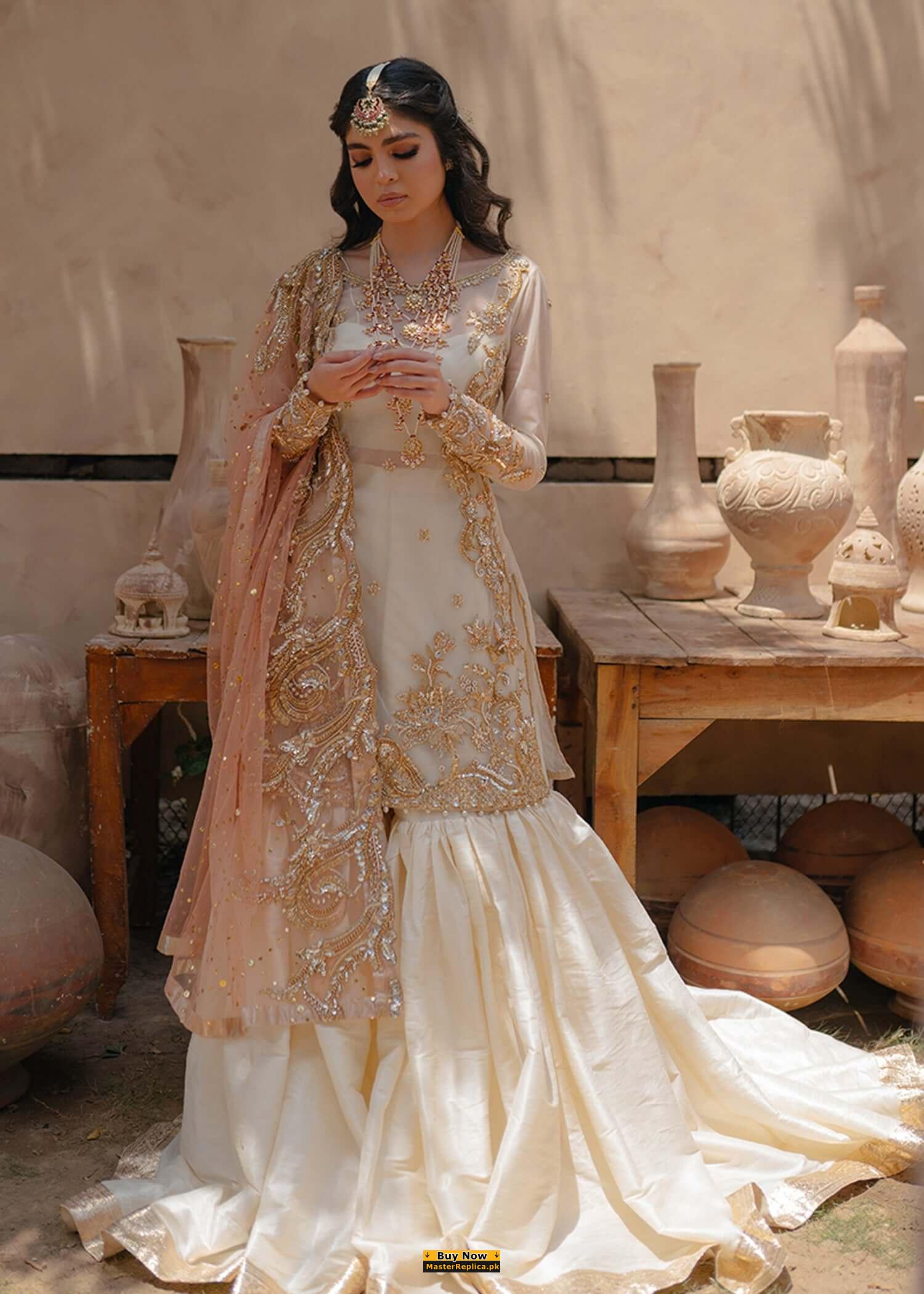Delicately crafted and personifying chic elegance, this Gorgeous Bridal Master Replica from the Latest Collection of Emaan Adeel is perfect for your day.