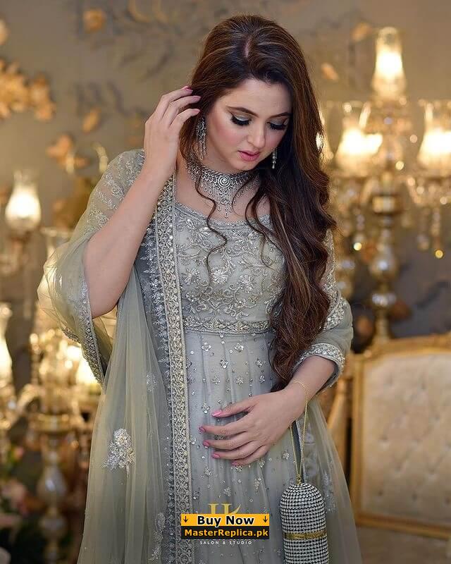 Designer Grey Wedding Dress Net Replica