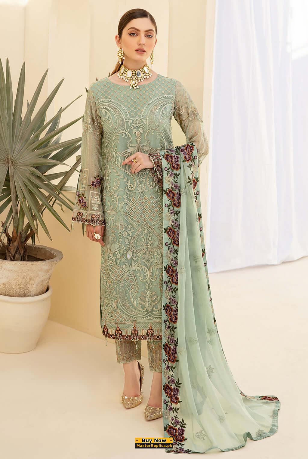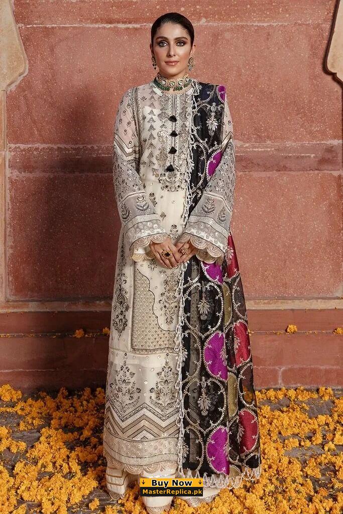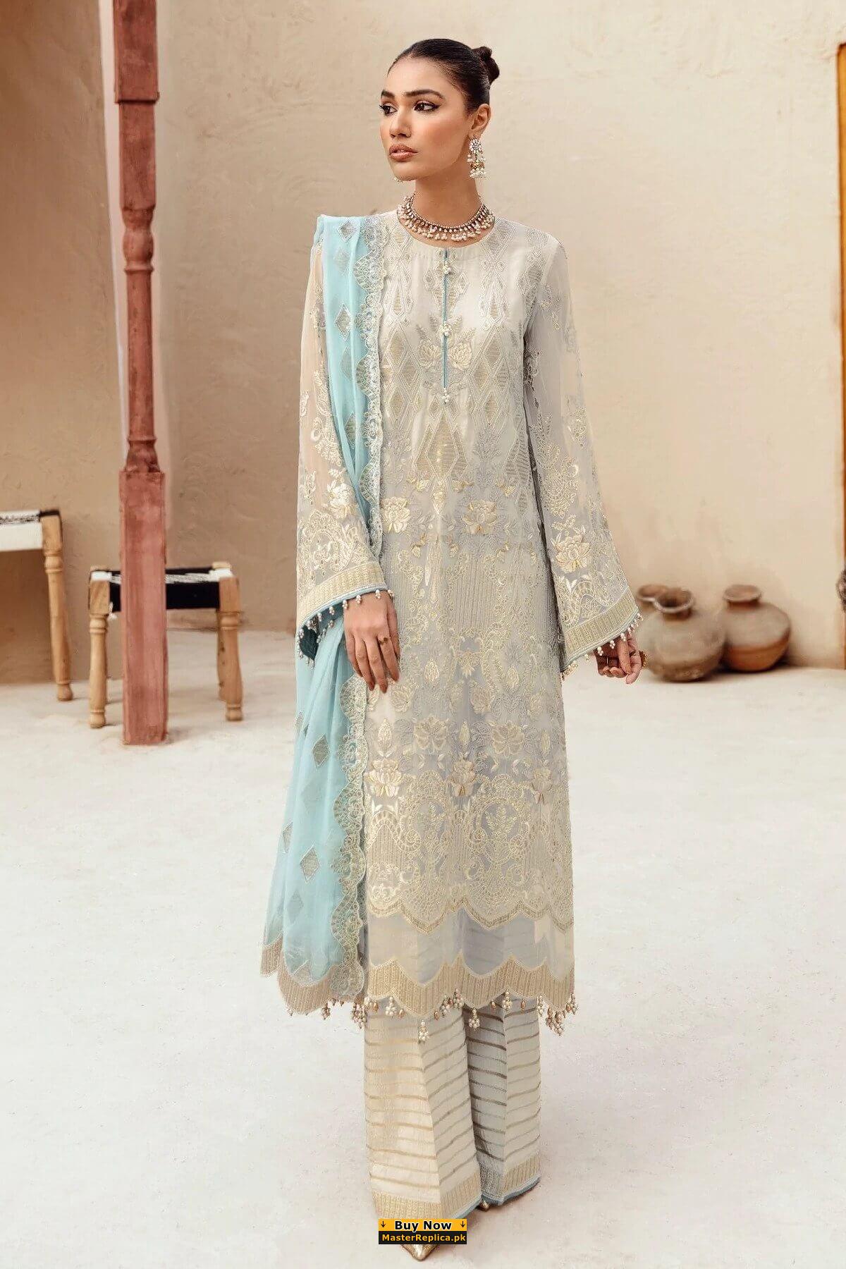 Feel the dreamy vibes with this classical meets modern Master Replica from the Latest Collection of Nishat.