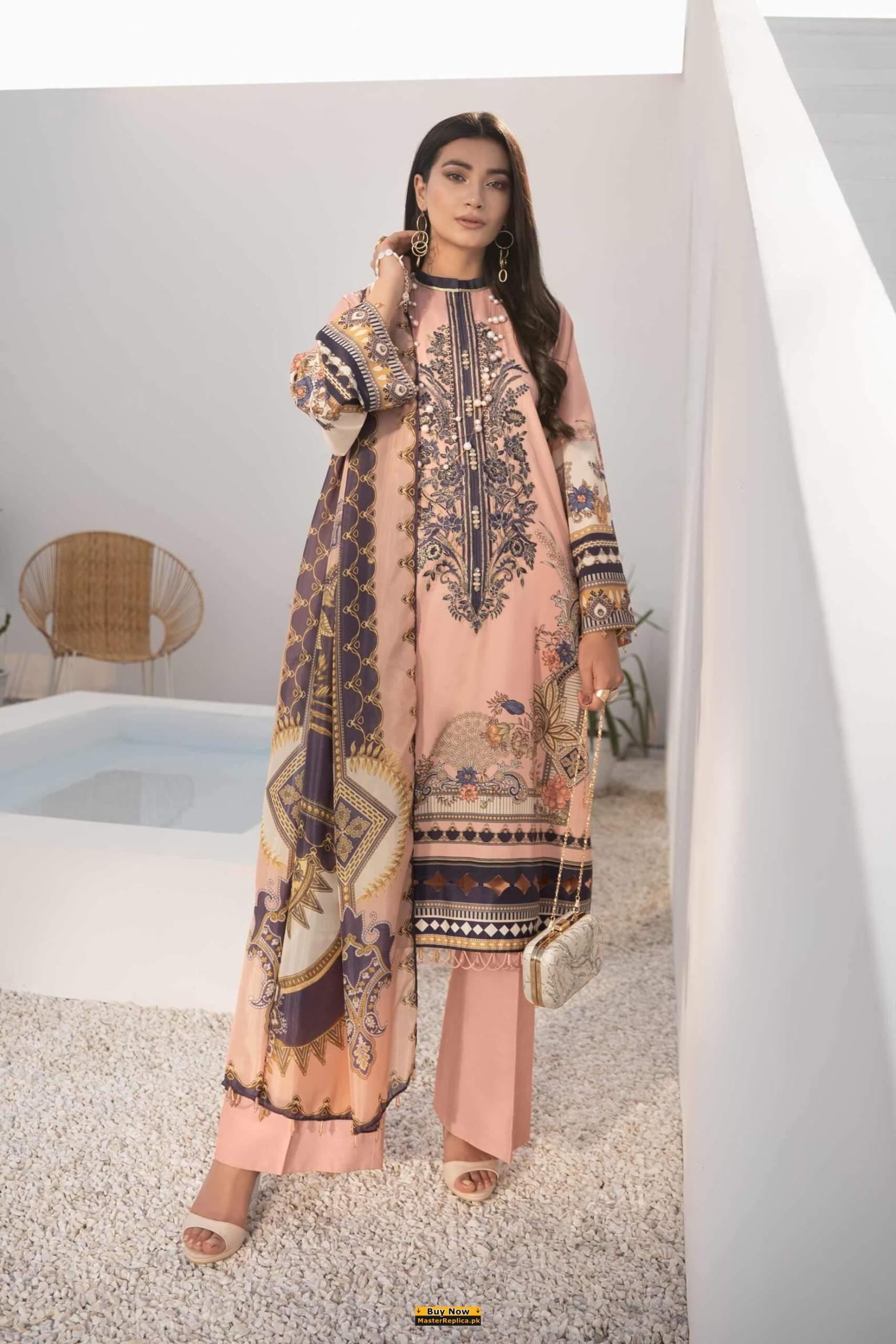 Bring out your beauty with this traditional yet modern embroidered Master Replica from the Latest Adan Libas Summer Collection.