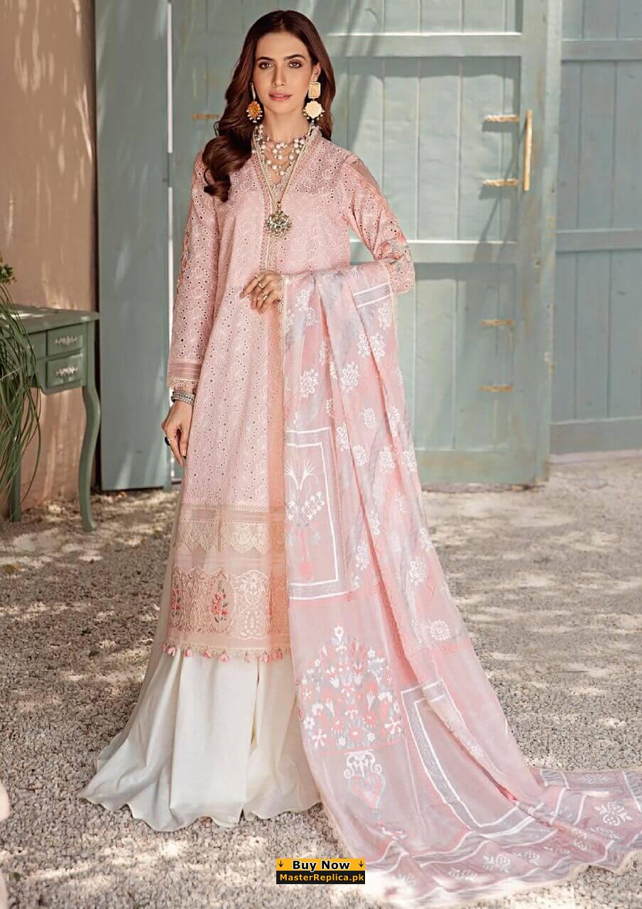 Designer Pink Chikankari Lawn Replica