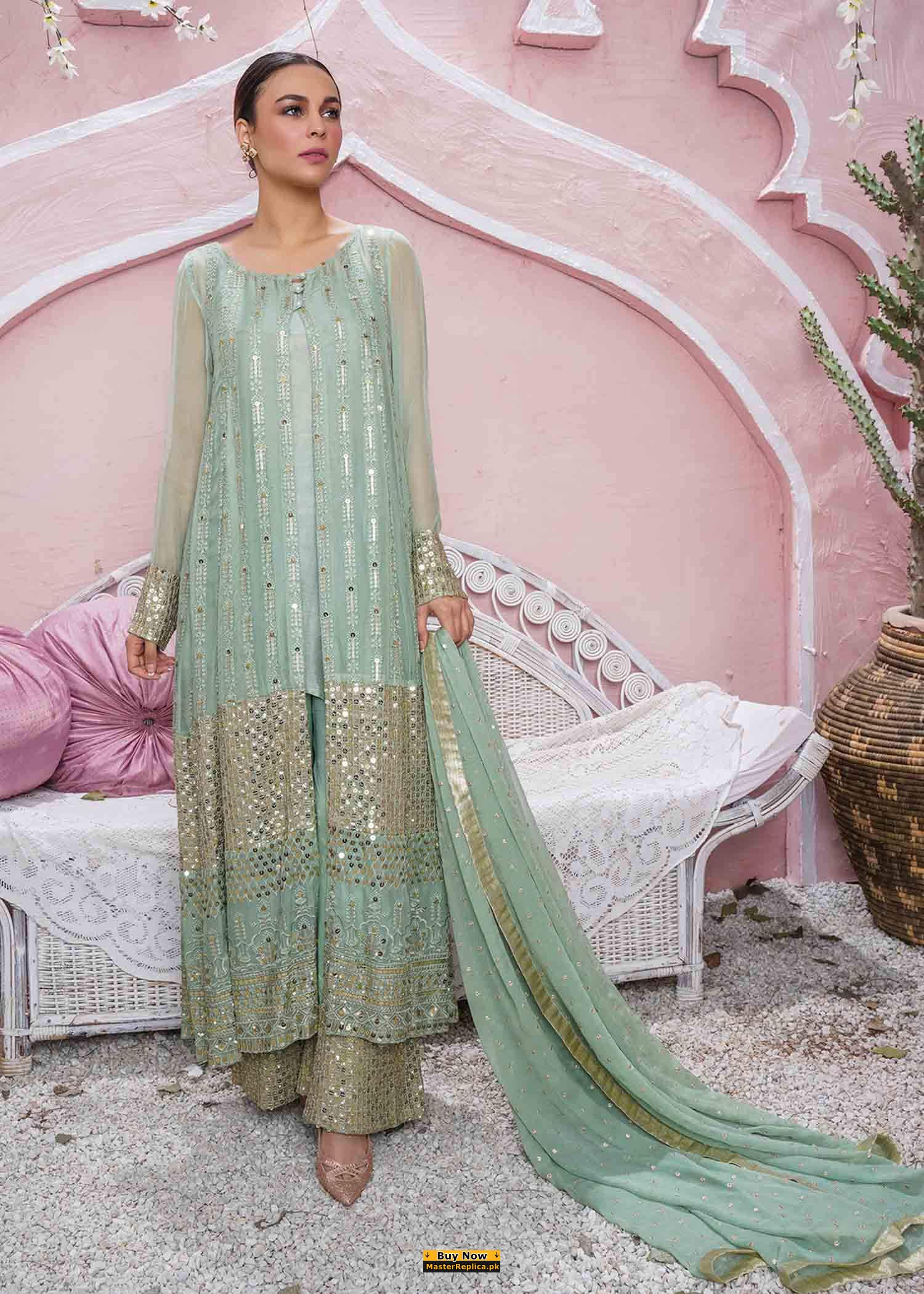 Heavy Embroidered Chiffon Sequence and Mirror work Front and