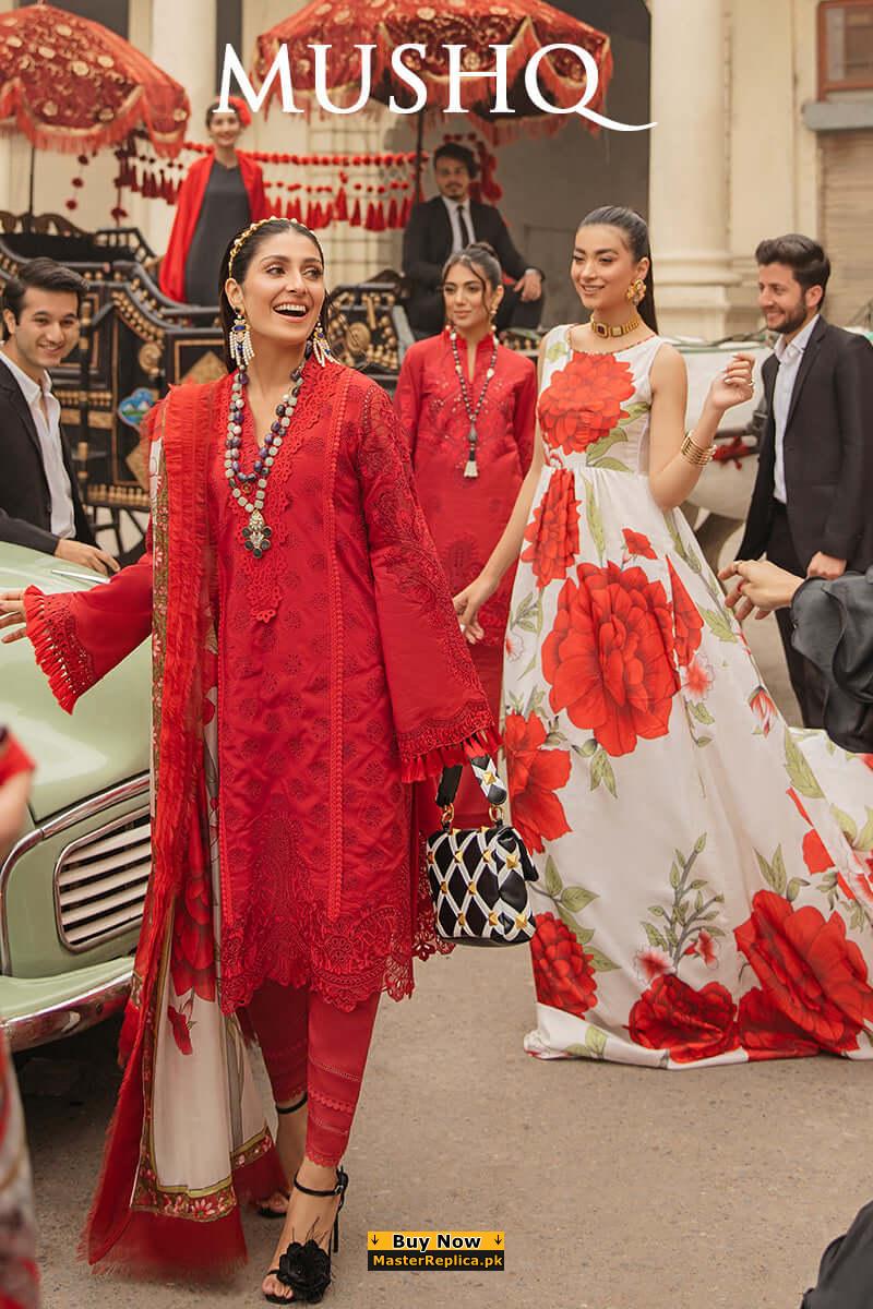 Mushq Red Luxury Lawn Collection Replica