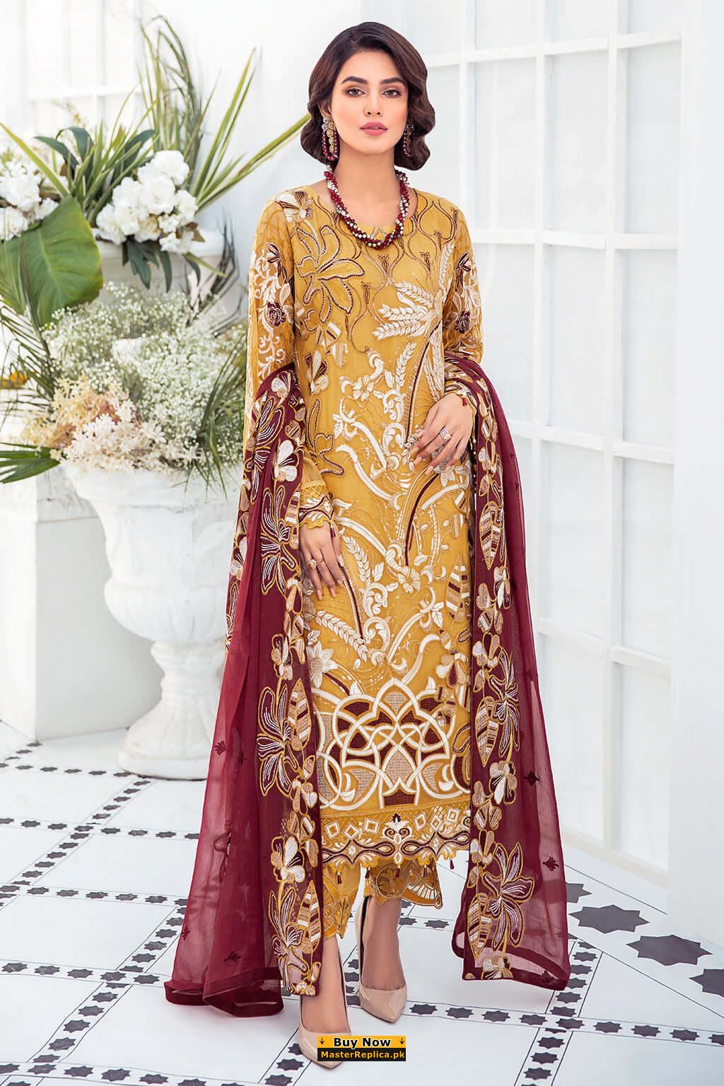 Steal the show with this appealing 3-piece Master Replica from the Latest Collection of Ramsha.