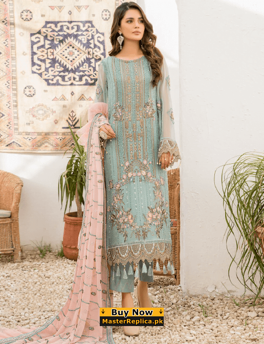 Feel the dreamy vibes with this classical meets modern Master Replica from the Latest Collection of Ramsha.