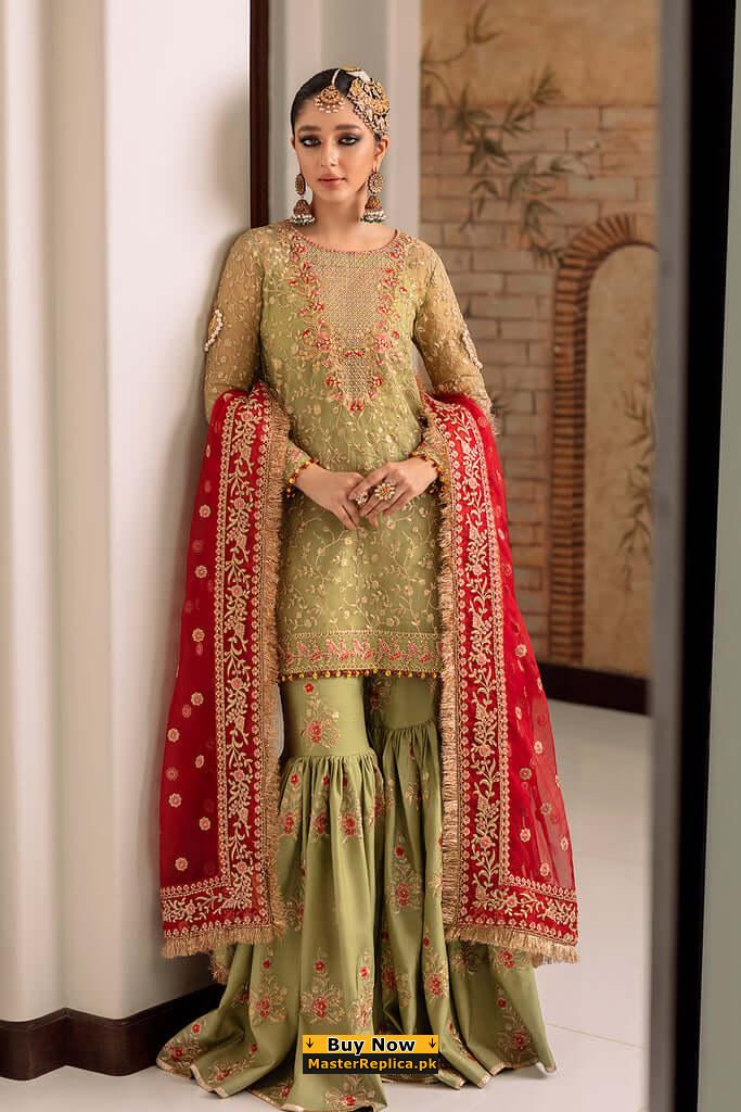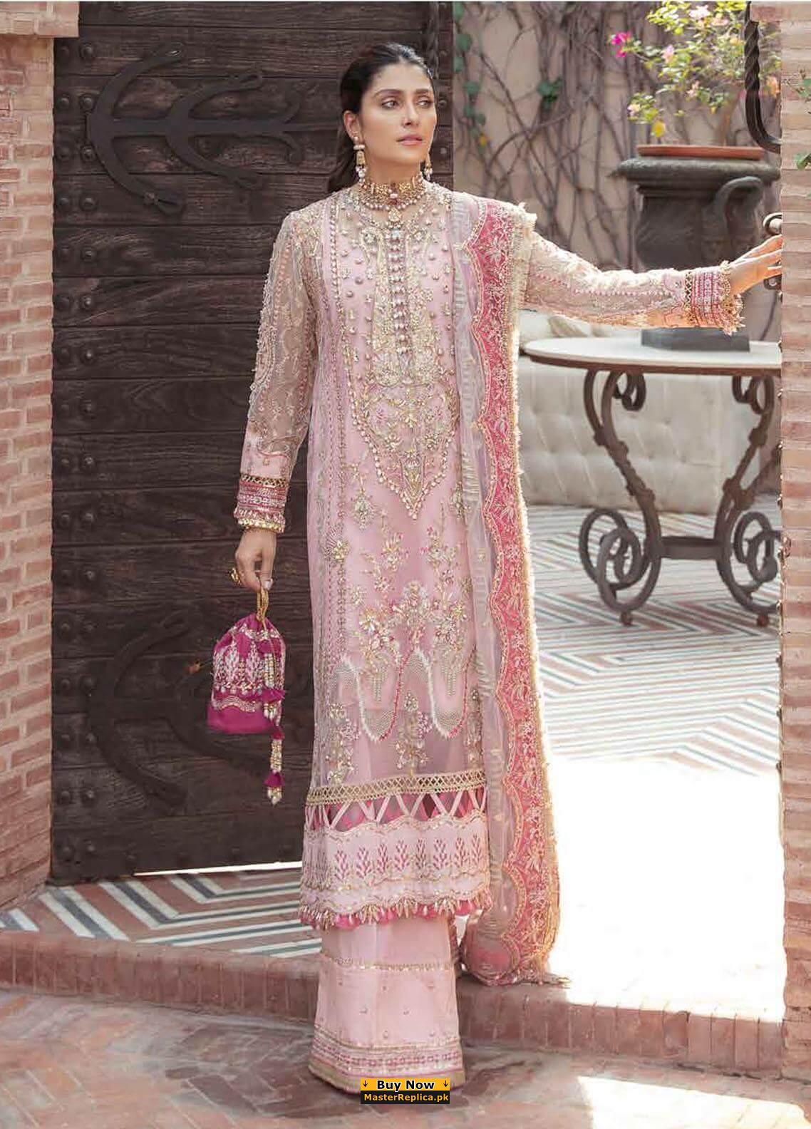 Indulge in to a dreamy confection of color and embroidery in this perfect Master Replica from the Latest Designer Wedding Collection.