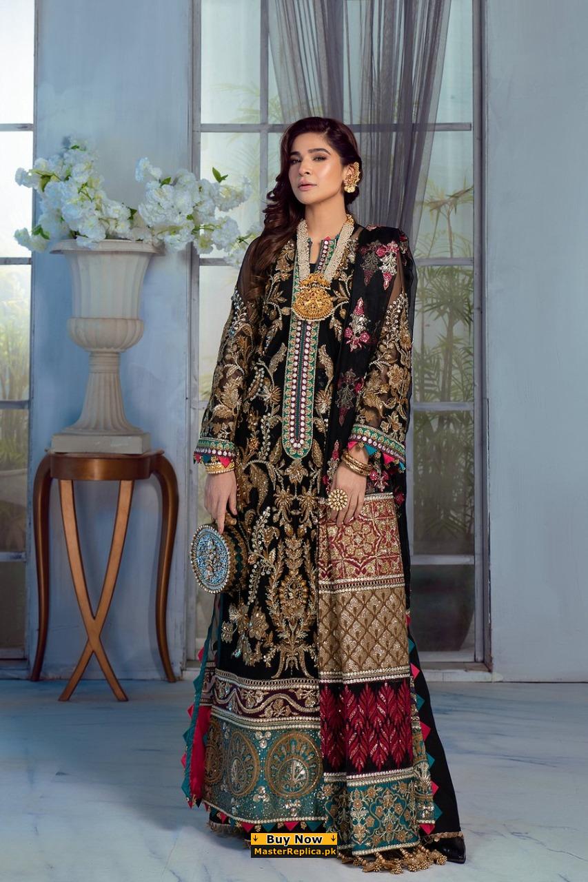 Gussy up the glamour with this intricate embroidered Master Replica from the Latest Maryam Hussain Black Collection.