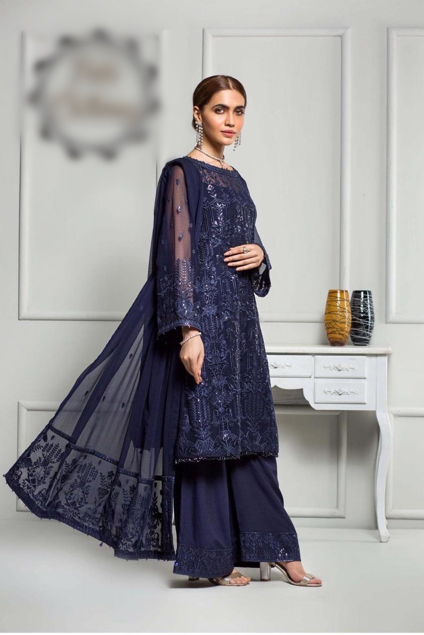 •Embroidered Heavy Chiffon Front With 3D Handwork
