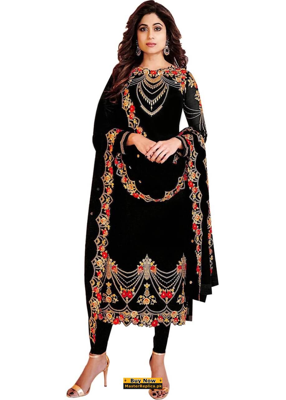 Make a statement in this intricately embroidered Master Replica from the Latest Indian Embroidered Chiffon Collection.
