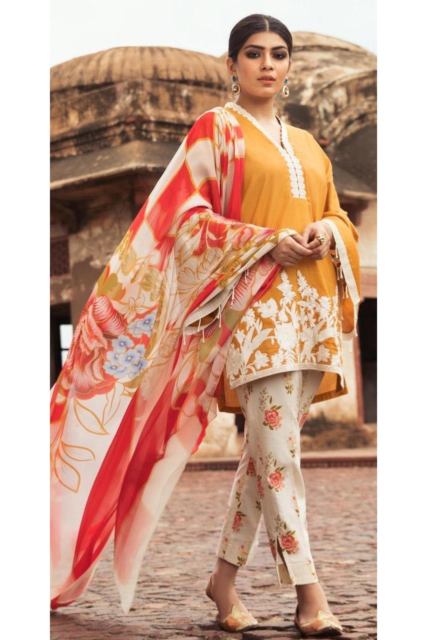 Charizma Lawn Collection 2020heavy embroidered scifflie cut work front & heavy embroidered center boarder on peace