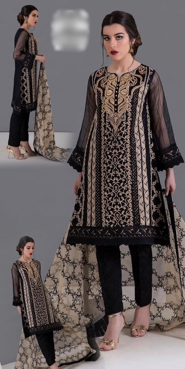 Embroidered Net Sequence and Hand work Body