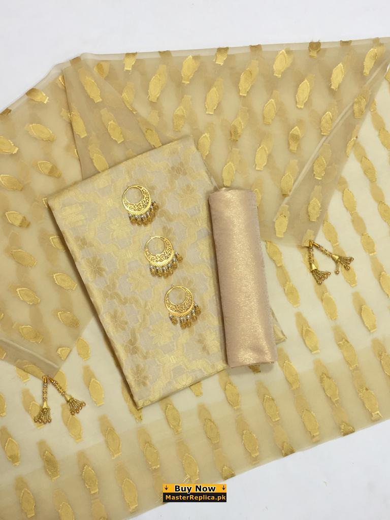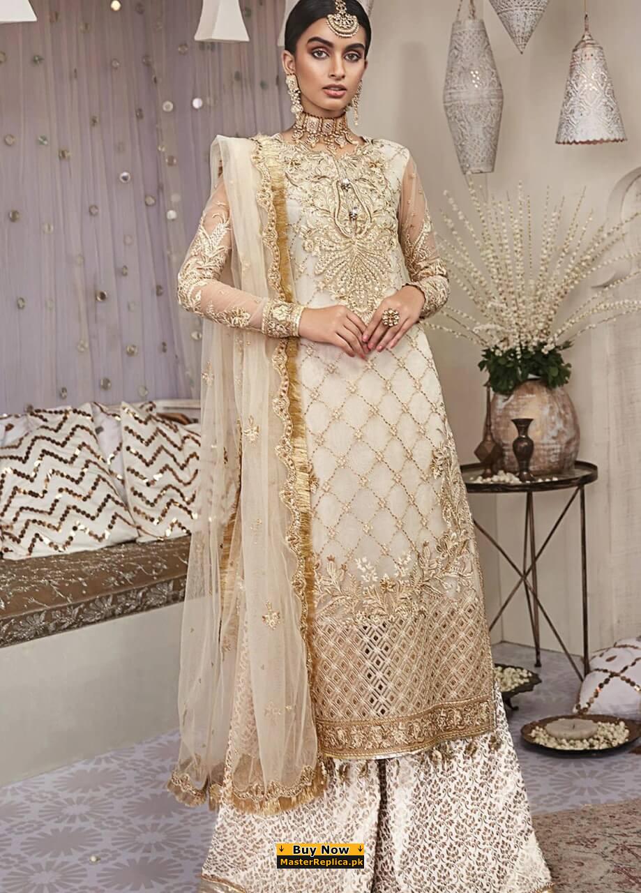To take up a notch, add this pleasing three-piece Master Replica from the Latest Collection of Elaf to your festive wardrobe.
