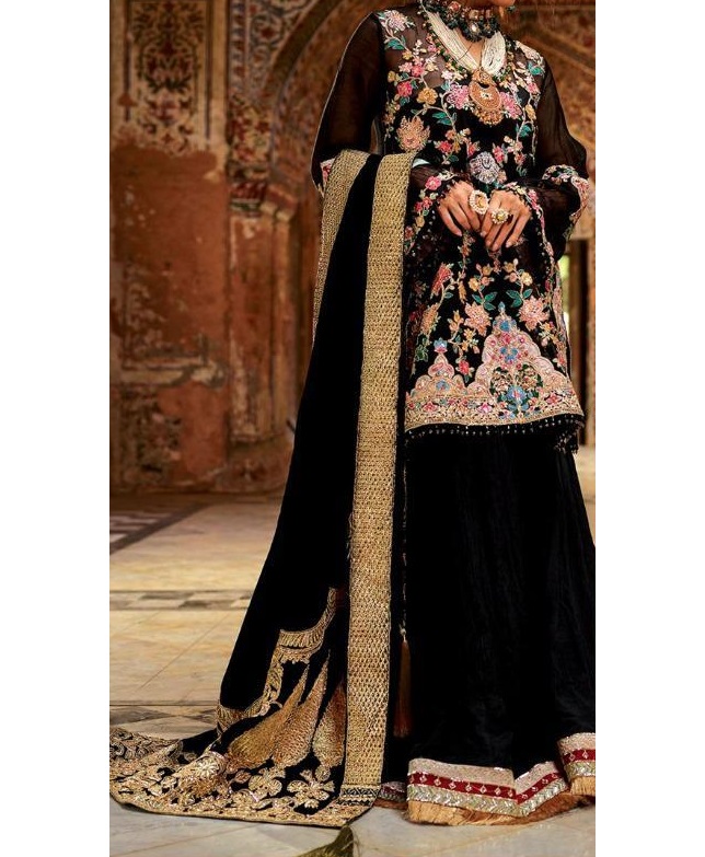Maria B Black Chiffon Frock Master ReplicaExuding modern glamour and timeless sophistication this Master Replica from the Latest Maria B Frock Collection is a showstopper.Fabric: Chiffon (Unstitched)Fully Embroidered Chiffon Sequence work Front with Embroidered DamanPlain Chiffon Back with