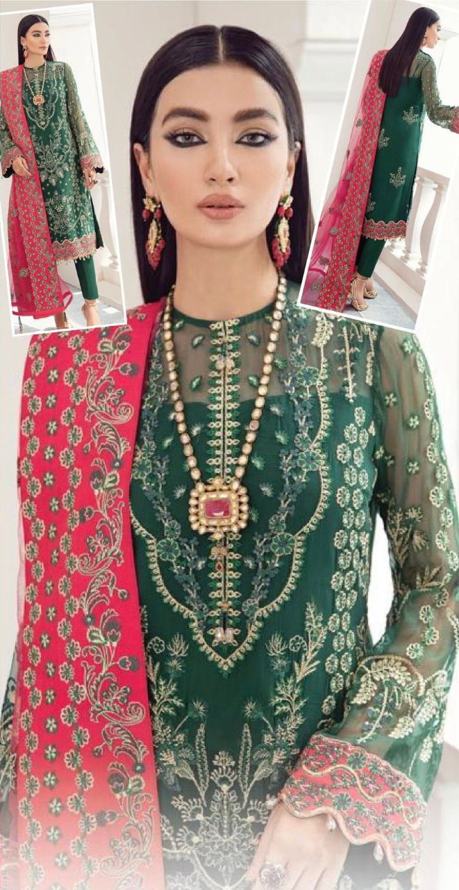 Designer Latest Net Bridal Collection Master ReplicaOur phenomenal intricate embroidered Master Replica from the Latest Designer Bridal Collection is a perfect stylistic mix for your day.Fabric: Net (Unstitched.)Embroidered Net Hand work, Sequins work and Mirror work BodyFully Embroidered Net Hand