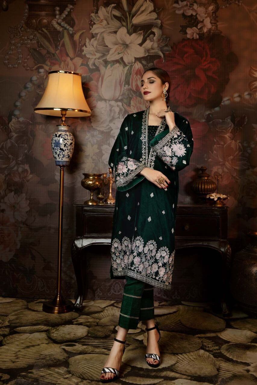 velvet fully heavy embroidered sleeves with heavy embroidered sleeves