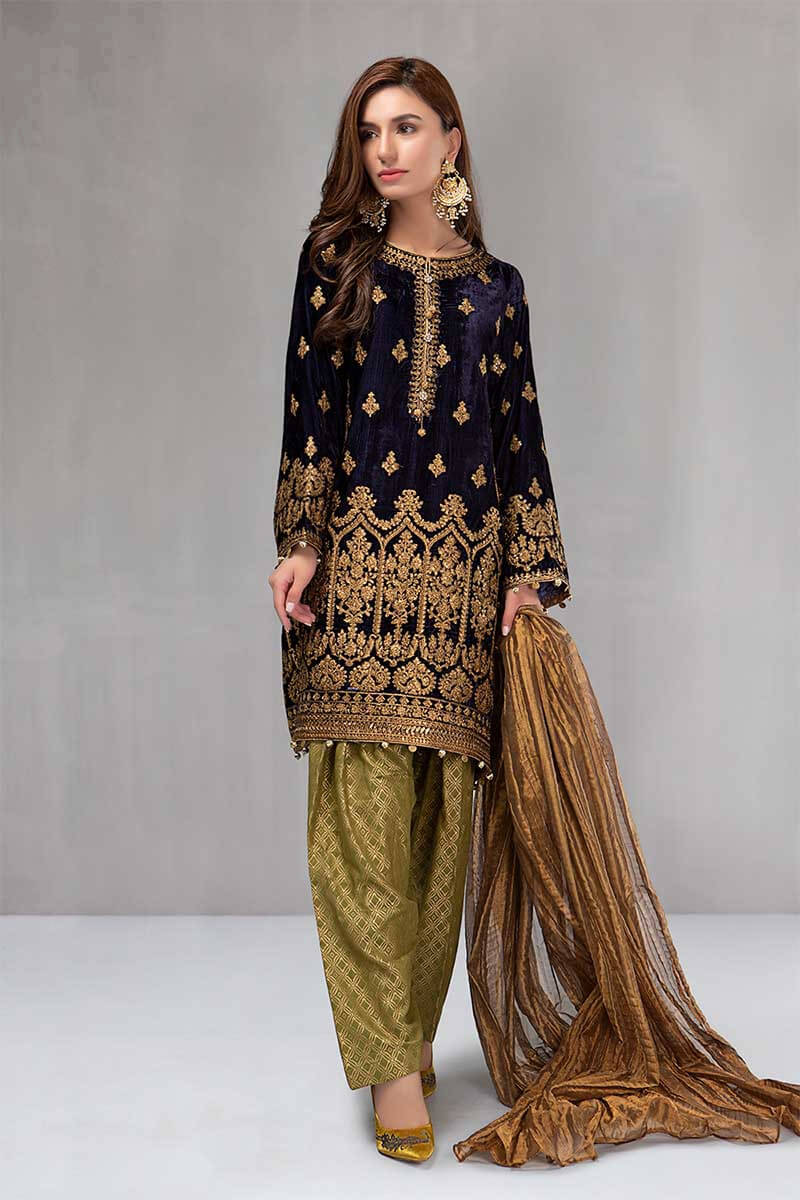 Heavy Embroidered Velvet Front with Embroidered Daman