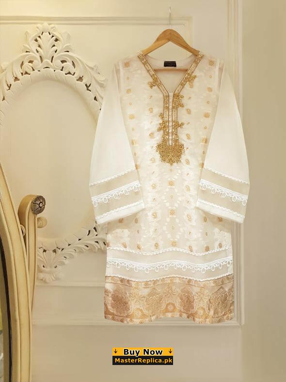 Agha Noor White and Gold Collection Replica