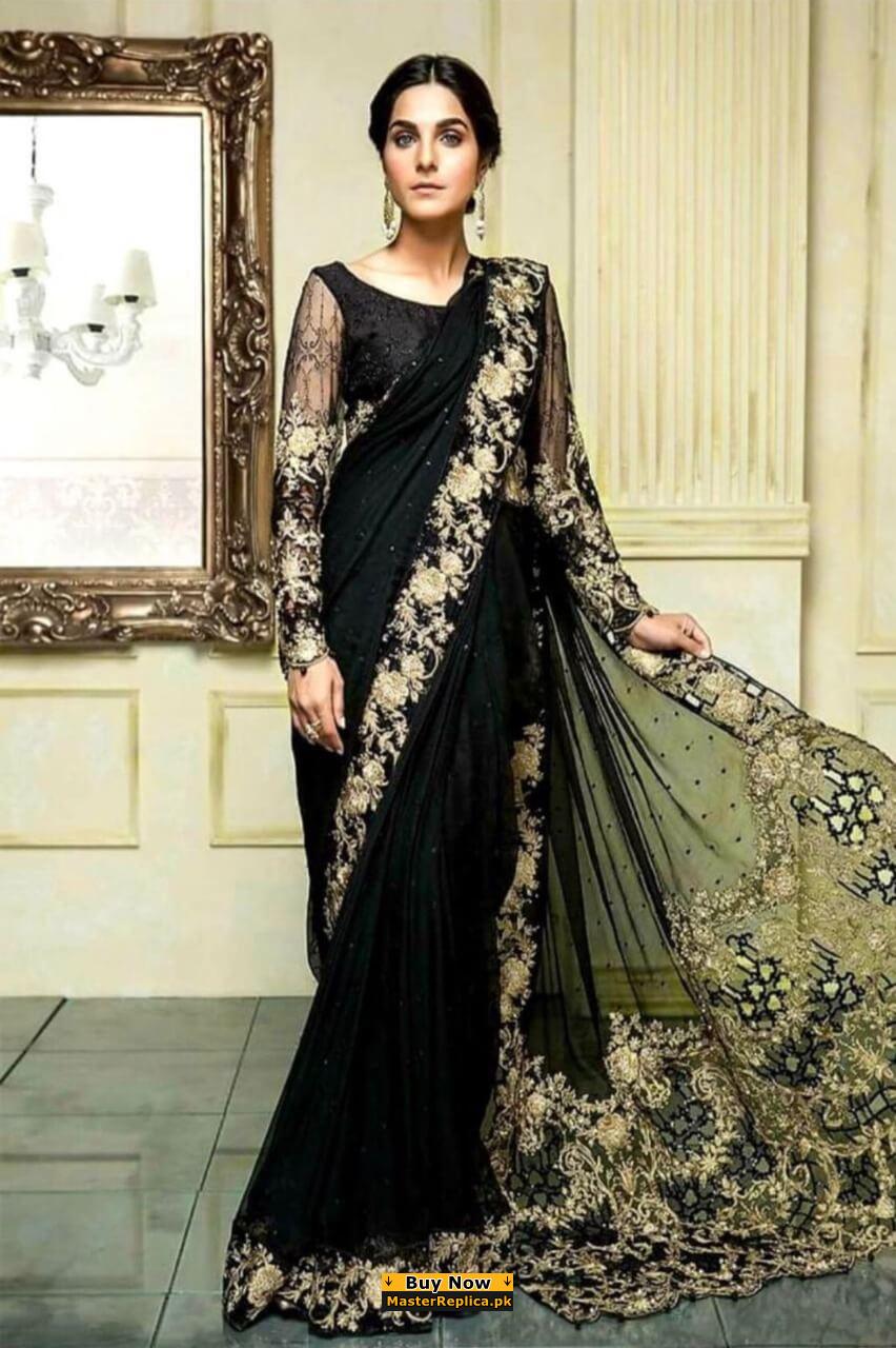 Maria B Black Chiffon Saree Master Replica