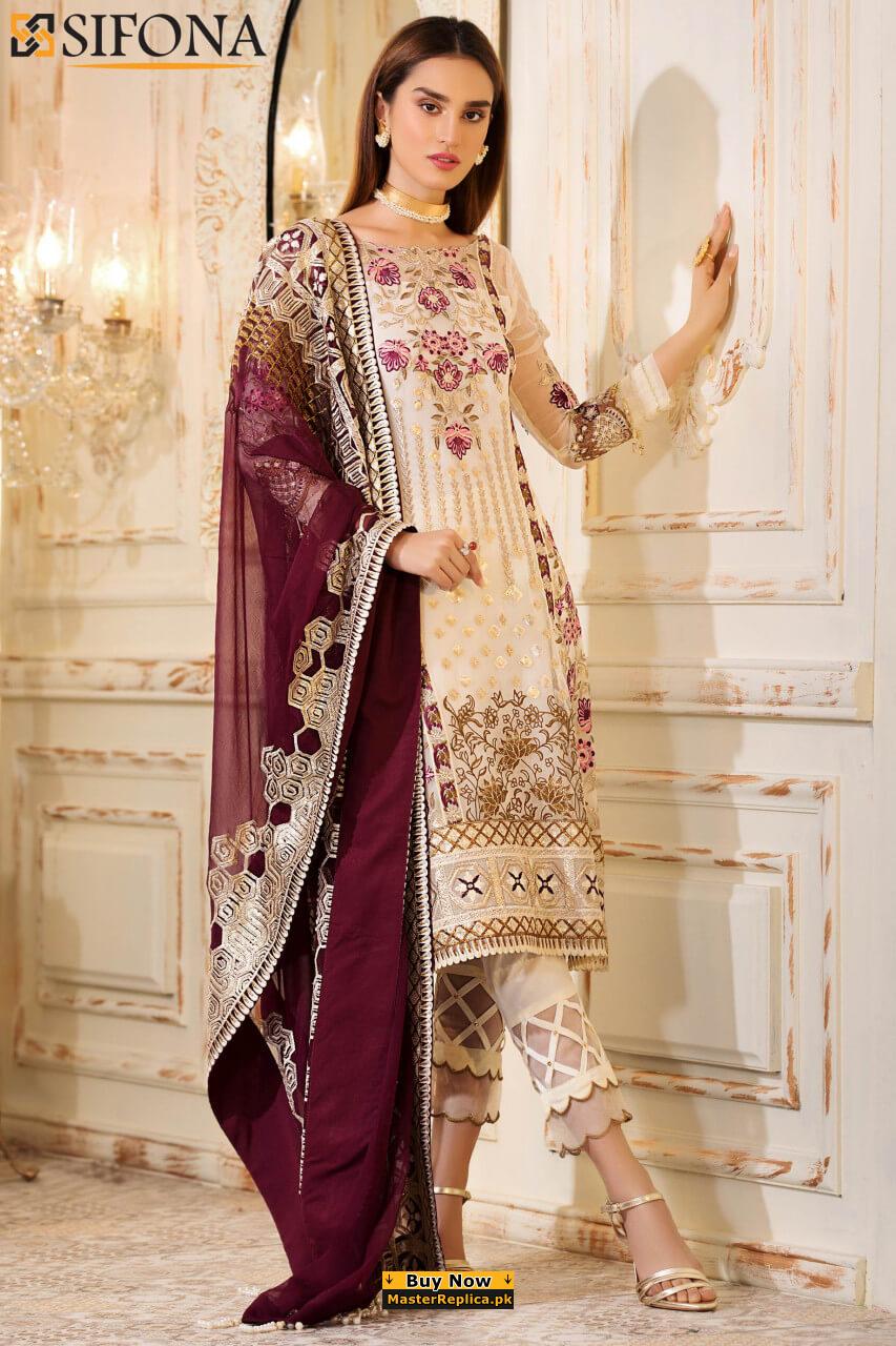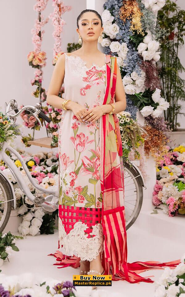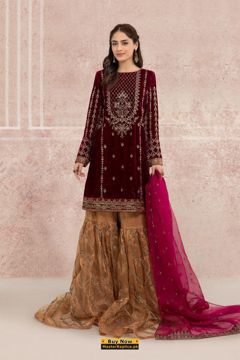 This Eye Catching Master Replica from the Latest Collection of Maria B is an immensely captivating traditional piece, enhancing the art of classical heritage showcasing the finest craftsmanship.