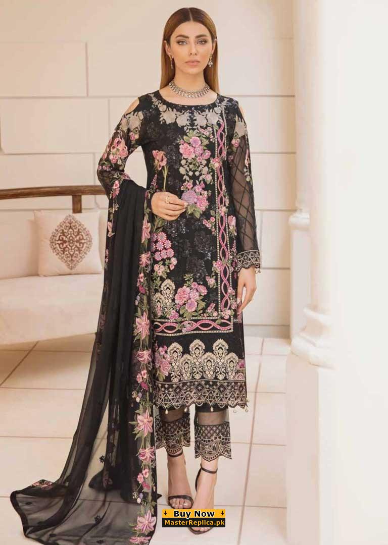 Ramsha Black Embroidered Suit Replica