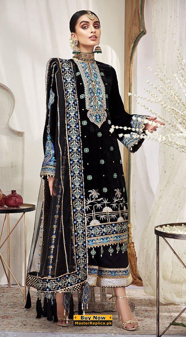 Fully Embroidered Velvet Hand work Front with Embroidered Daman