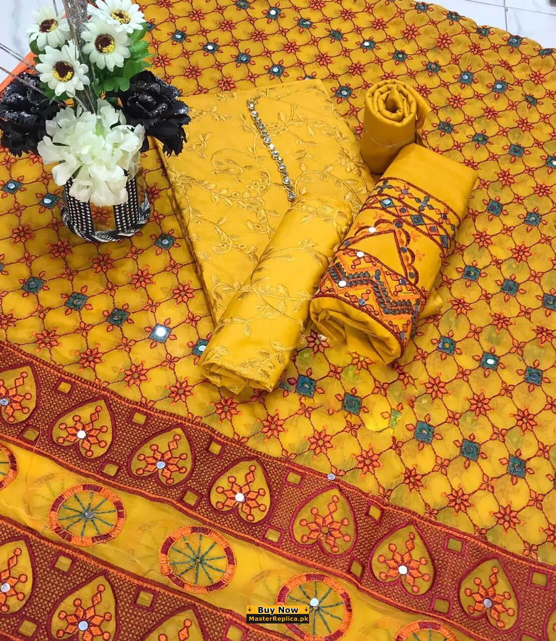 Fully Embroidered Chiffon Front and Back