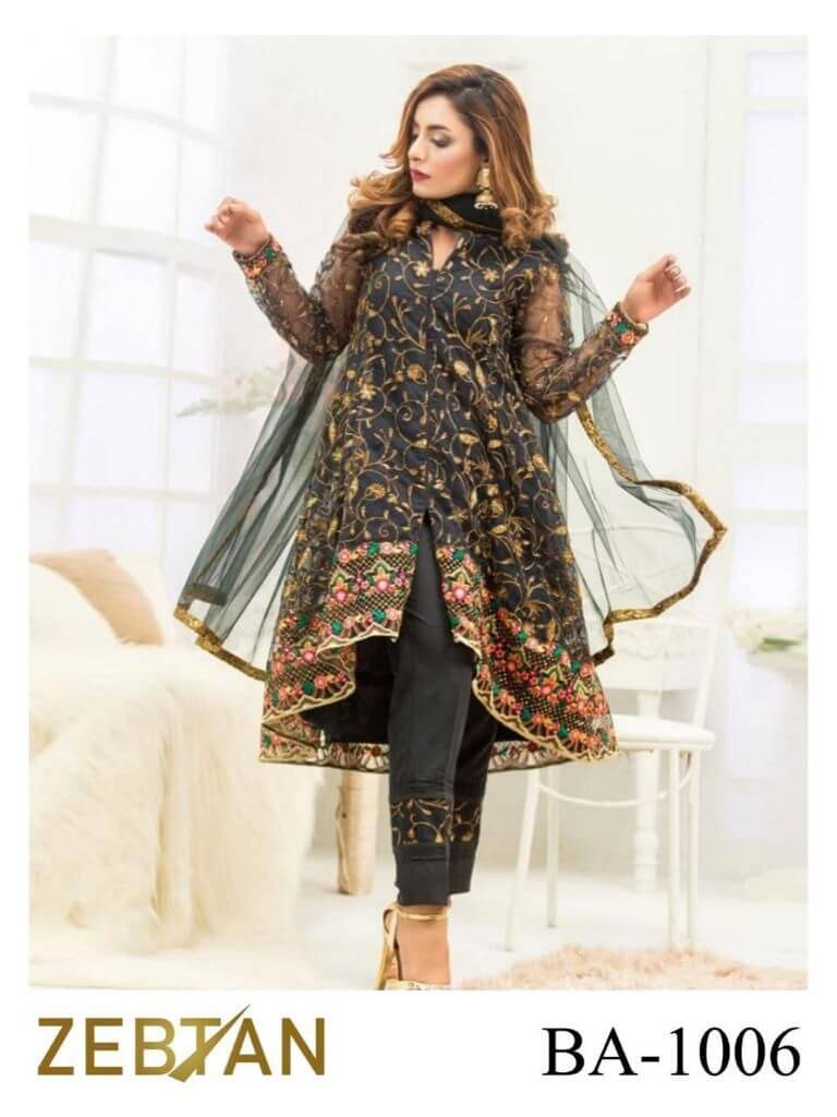 Fully Embroidered Net Hand work Front and Back