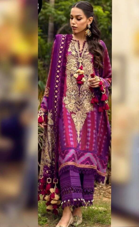 An example of beauty and elegance. Look breathtakingly stylish in this embroidered Master Replica from the Latest Collection of Maria B.