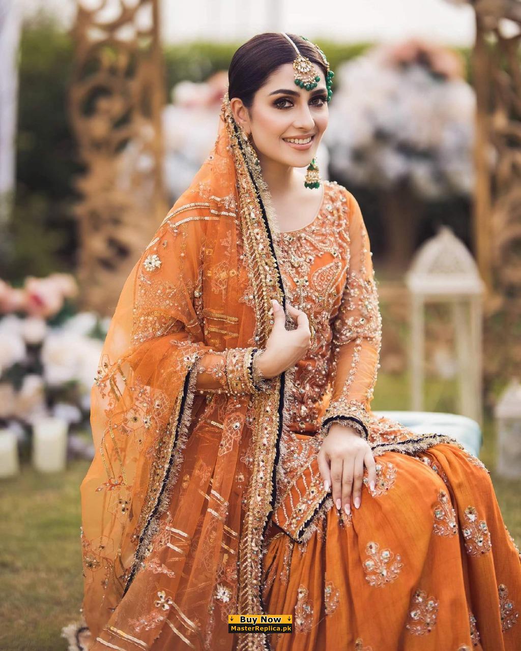 Discover your inner charm with this ravishing Master Replica from the Latest Designer Orange Bridal Collection.
