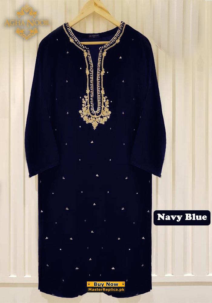 Agha Noor Blue Velvet Dress Replica