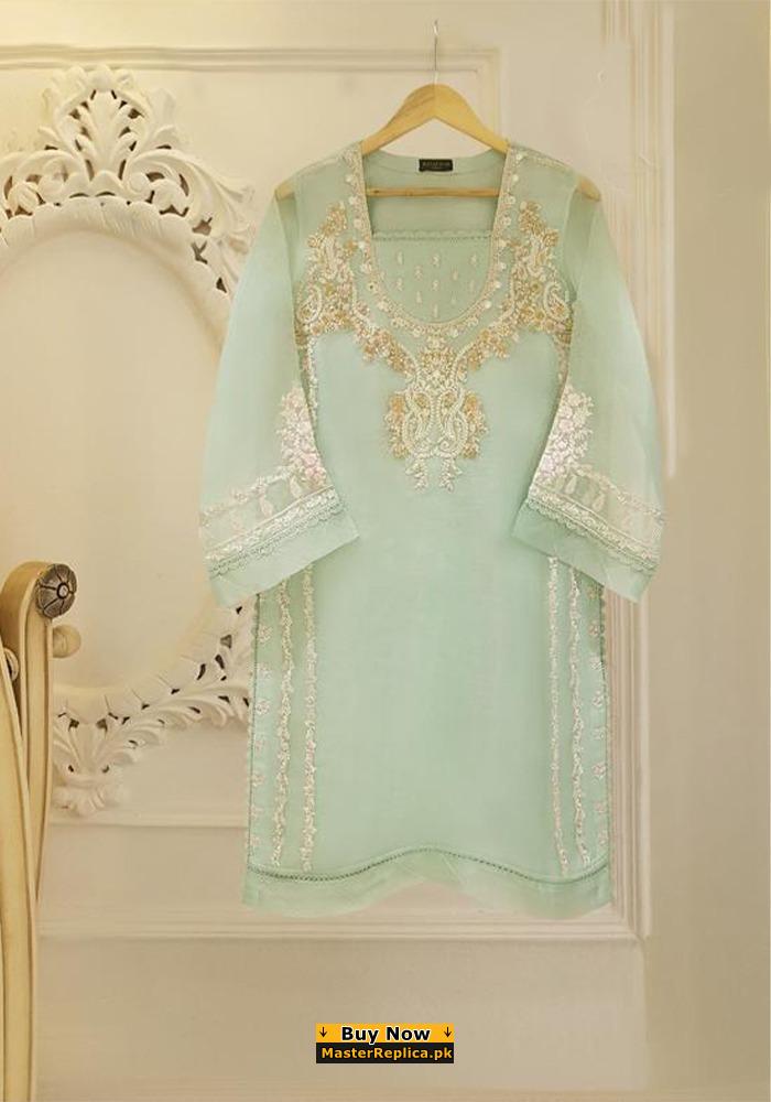 Exude a minimalist sobriety in this monotonous intricate embroidered Master Replica from the Latest Collection of your favorite Designer Brand Agha Noor.
