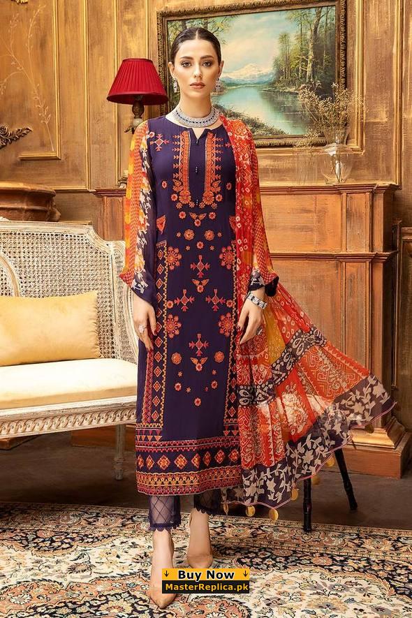 This Eye Catching Master Replica from the Latest Collection of Maria B is an immensely captivating traditional piece, enhancing the art of classical heritage showcasing the finest craftsmanship.