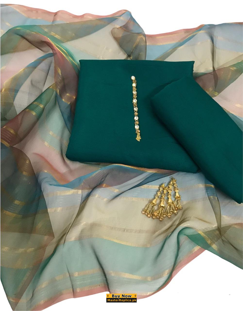 Embroidered Chiffon Sequence work Front with Embroidered Daman