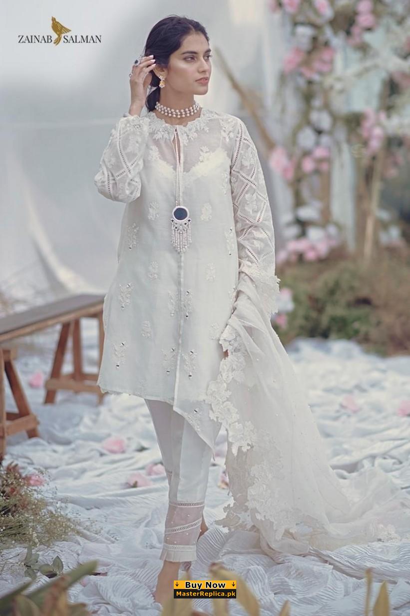 An example of beauty and elegance. Look breathtakingly stylish in this embroidered Master Replica from the Latest Collection of Zainab Salman.