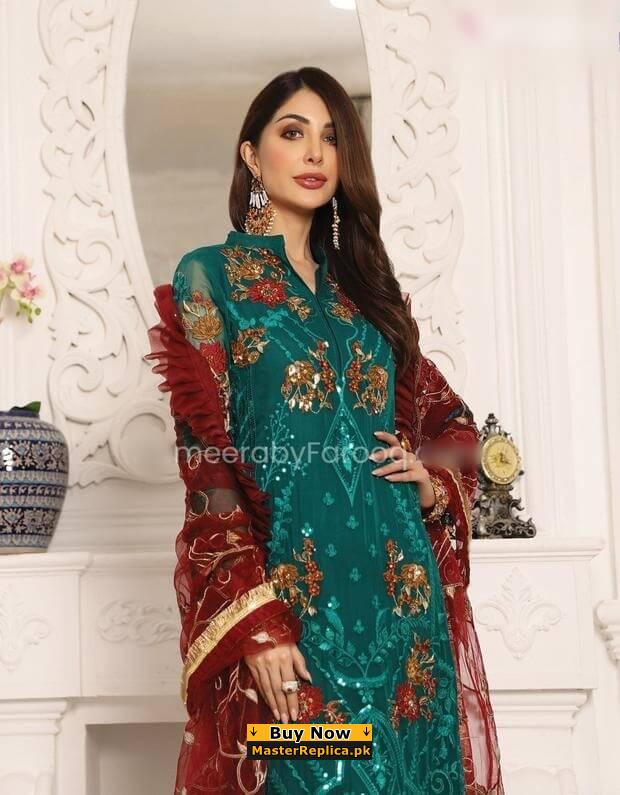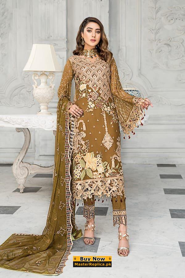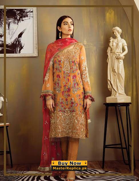 Full Heavy Embroidery Chiffon Front With Hand Work And 3D flowers